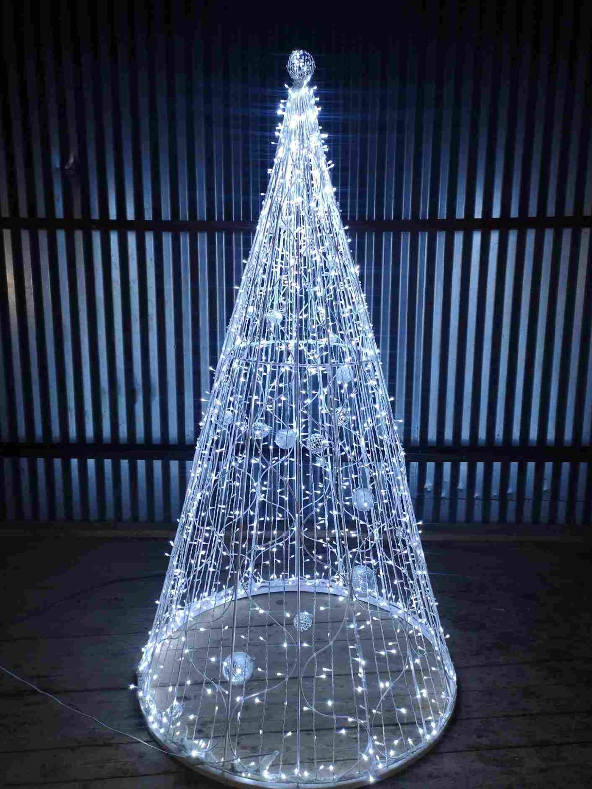 Елка-КОНУС 3D — это дизайнерская световая инсталляция, выполненная в форме геометрически точного конуса. В отличие от традиционных новогодних елей, она смотрится минималистично, современно и строго. Такая фигура особенно хорошо вписывается в городскую среду, коммерческие фасады, общественные зоны и интерьерные пространства с современной архитектурой.