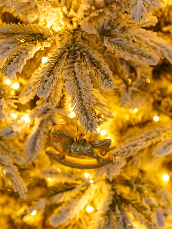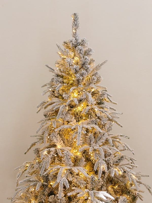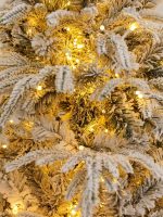 Все ветки выполнены из качественной пленки-ПВХ, визуально имитирующей хвою. Заснеженное покрытие распределено равномерно и выглядит натурально, словно на дерево действительно выпал снег. Хвоя плотная, ветви — отгибные, что позволяет придать дереву нужную форму на месте.