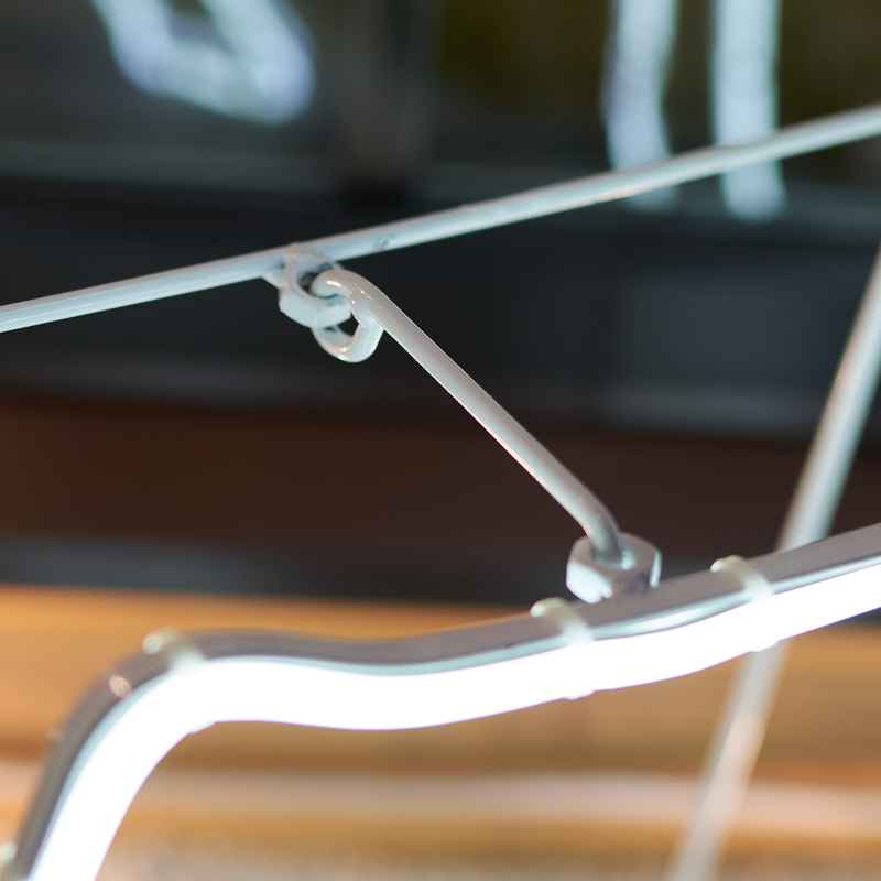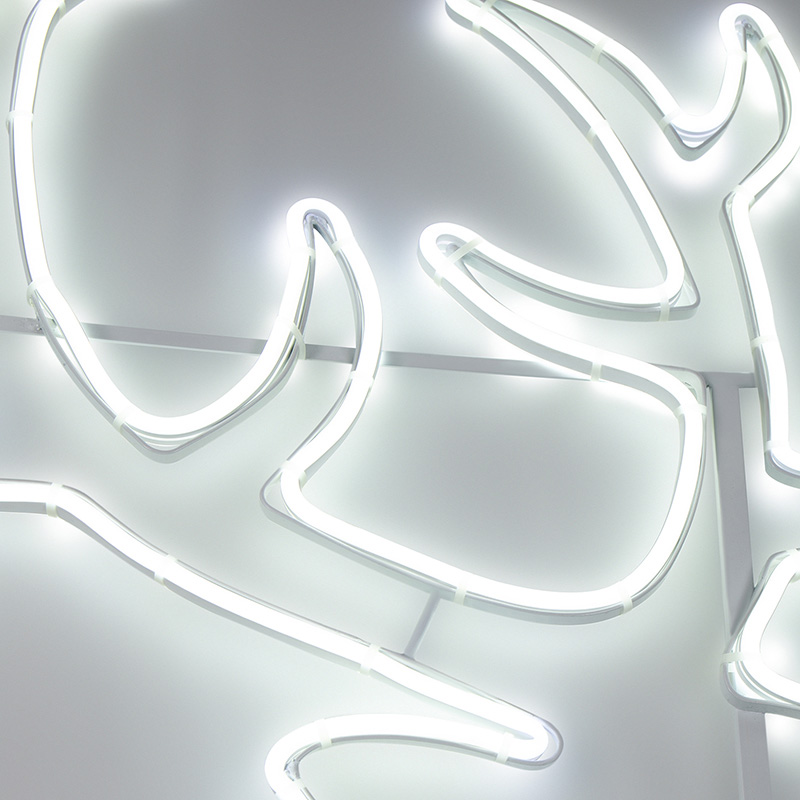 Белое свечение и плавные контуры гибкого неона создают ощущение мягкого, сказочного света, который хорошо воспринимается зрительно и вызывает положительные эмоции.