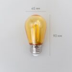 Лампа филаментная H60 мм 220 В, E27, 2 Вт, IP65, 2200 K, тёпло-белое свечение