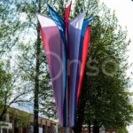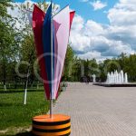 Флаговая конструкция ФПК 003 ― эффектное решение для уличного оформления ко Дню Победы, Дню города и других праздничных мероприятий. Объёмная 3D-фигура на каркасе из оцинкованной стали с покраской устойчива к погодным условиям, рассчитана на круглогодичную эксплуатацию и служит более 50 000 часов.