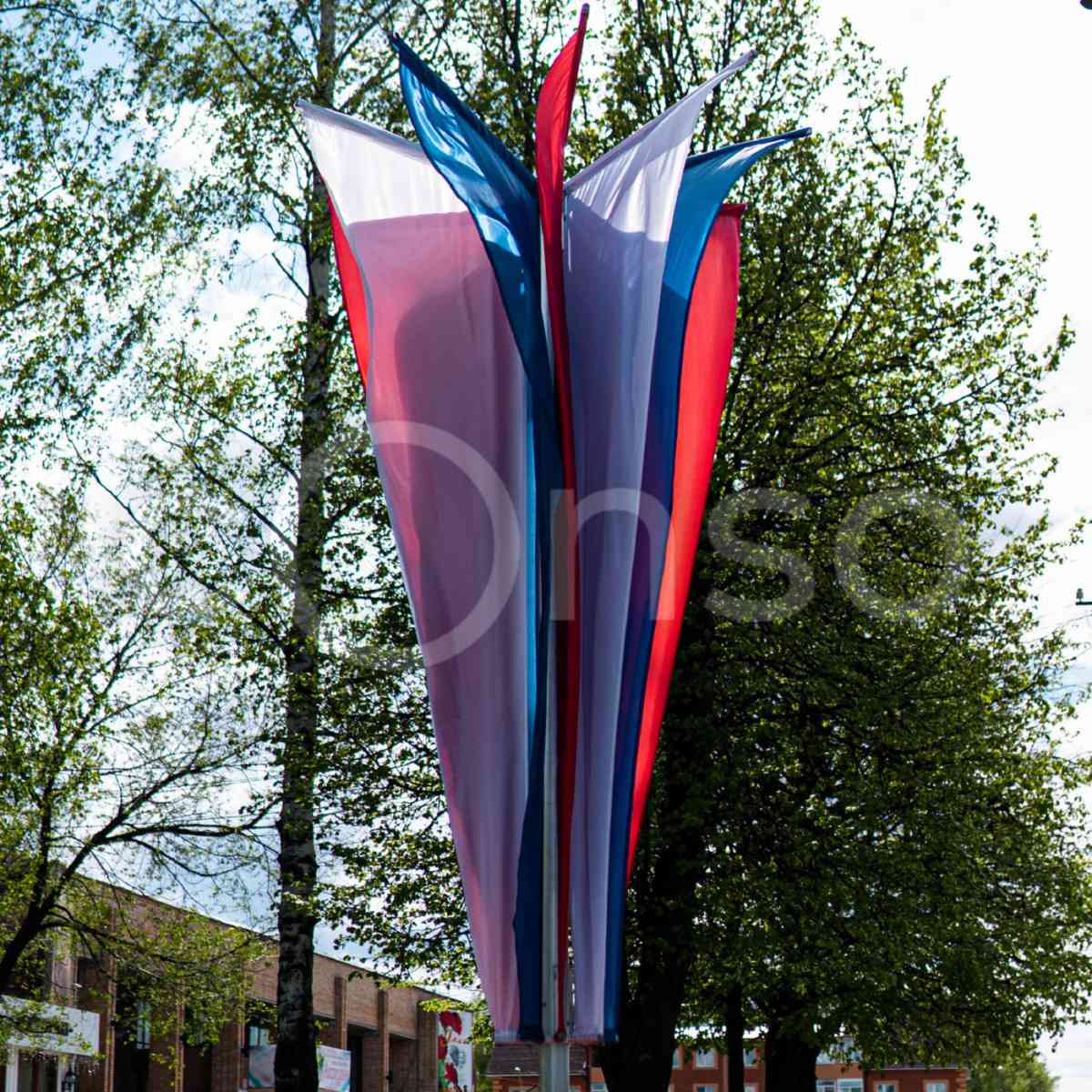 Флаговая конструкция ФПК 003 ― это надёжное и эффектное решение для праздничного оформления, которое подчеркнёт значимость события и создаст атмосферу торжества.