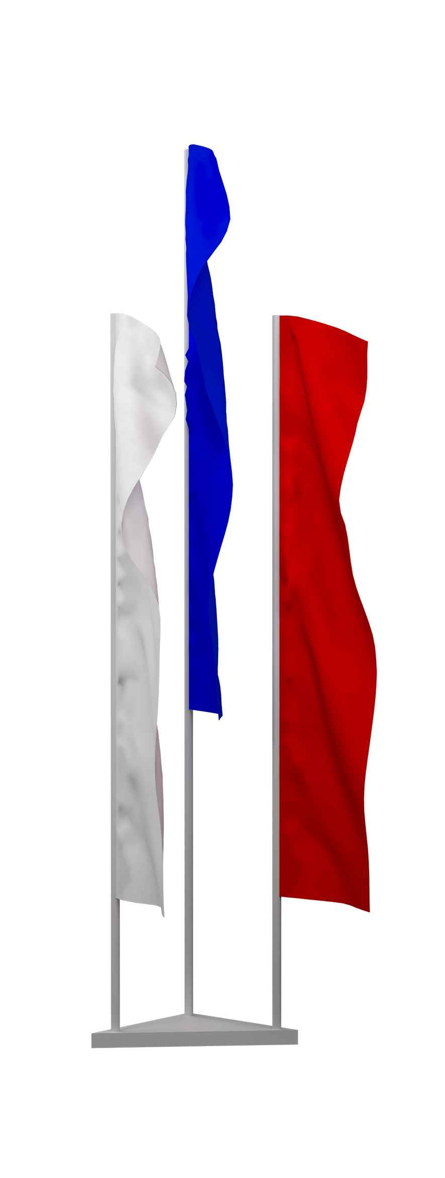 Форма каждого флага выверена с учётом композиционной логики: высота, наклон и расстояние между элементами подобраны так, чтобы при установке на фоне архитектуры конструкция смотрелась гармонично и объёмно, несмотря на плоский 2D-формат.