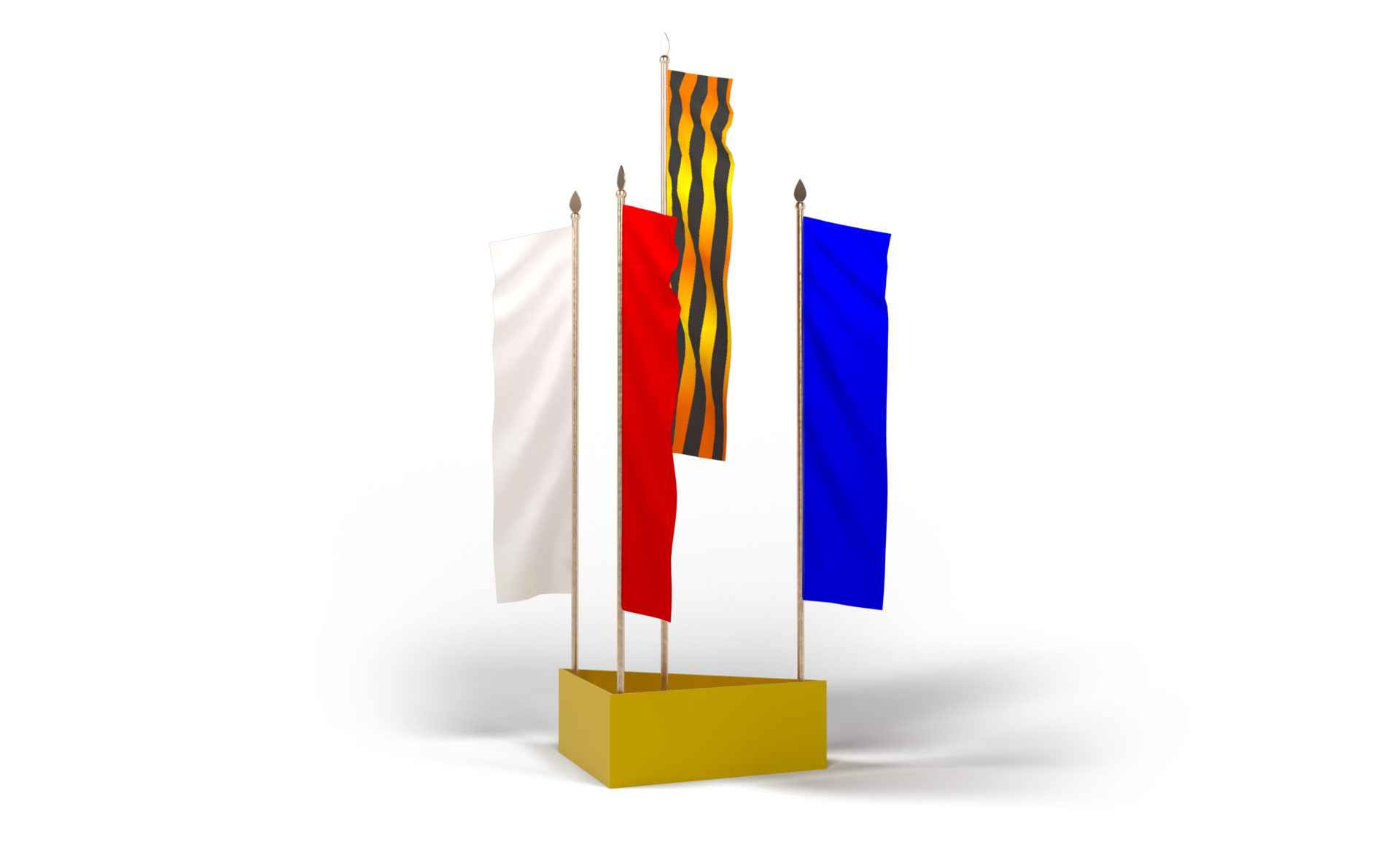 Фигура выполнена в форме классического флага с развевающимся полотном. Эта форма легко читается издалека, моментально вызывает ассоциации с торжеством, победой, единством. Она уместна и на 9 Мая, и на День города, и на любых официальных, корпоративных или региональных мероприятиях.