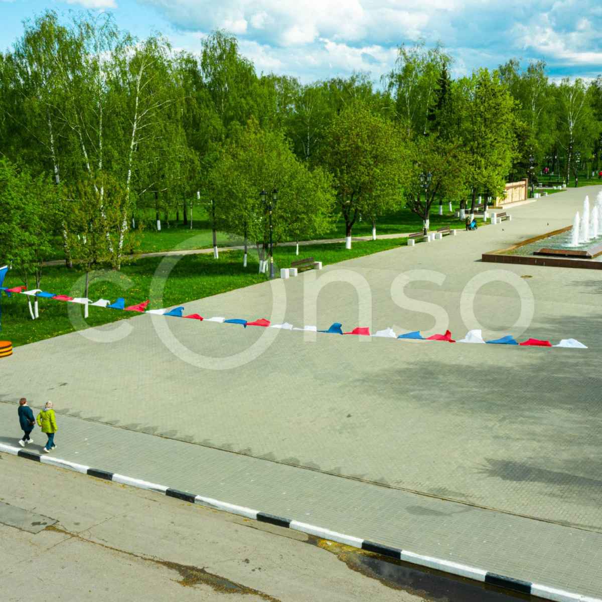 на аллеях, площадях, пешеходных улицах;