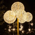 Фотозона может быть дополнена другими световыми объектами — арками, шарами, фигурами животных или новогодними инсталляциями. Такое сочетание позволяет создавать масштабные композиции для городских и корпоративных проектов.