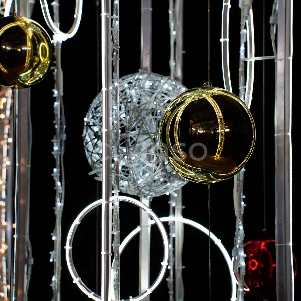 Световая фотозона «Шар с подвесками» — это один из популярных форматов: яркий, безопасный, долговечный и запоминающийся.
