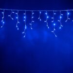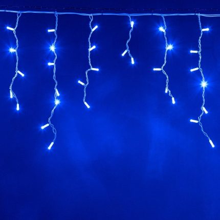 Гирлянда Бахрома 5 м Синий с мерцанием 220В, 150 LED, Провод Белый Каучук, IP65
