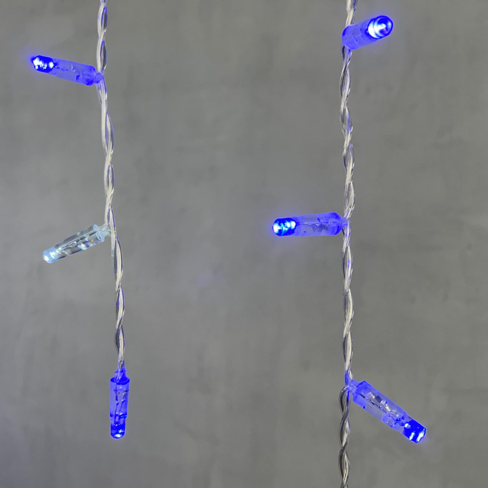 Гирлянда Бахрома с Колпачком 4,9 x 0,5 м Синяя с Мерцанием Белого Диода 220В, 195 LED, Провод Прозрачный ПВХ, IP65