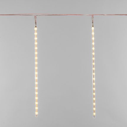 Гирлянда выполнена из прозрачного ПВХ — гибкого и лёгкого материала, устойчивого к перегибам. Светодиоды не нагреваются, что делает модель безопасной для украшения ёлок, тканей и бумажного декора.