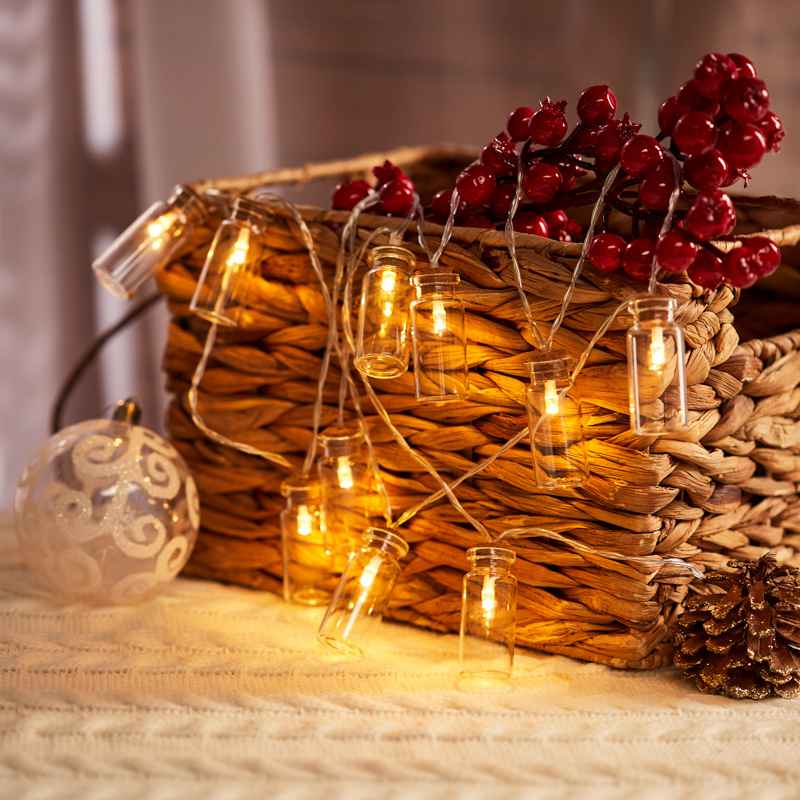 Гирлянда «Баночки» длиной 1.5 м — стильное декоративное освещение для дома, кафе и праздничных фотозон. Тёплый белый свет, 10 LED, питание от батареек, прозрачный ПВХ-провод. Подходит для ёлок, интерьера, декора столов и зимних композиций. Серия HOME. Готовое решение для Нового года, мероприятий и уютной подсветки.