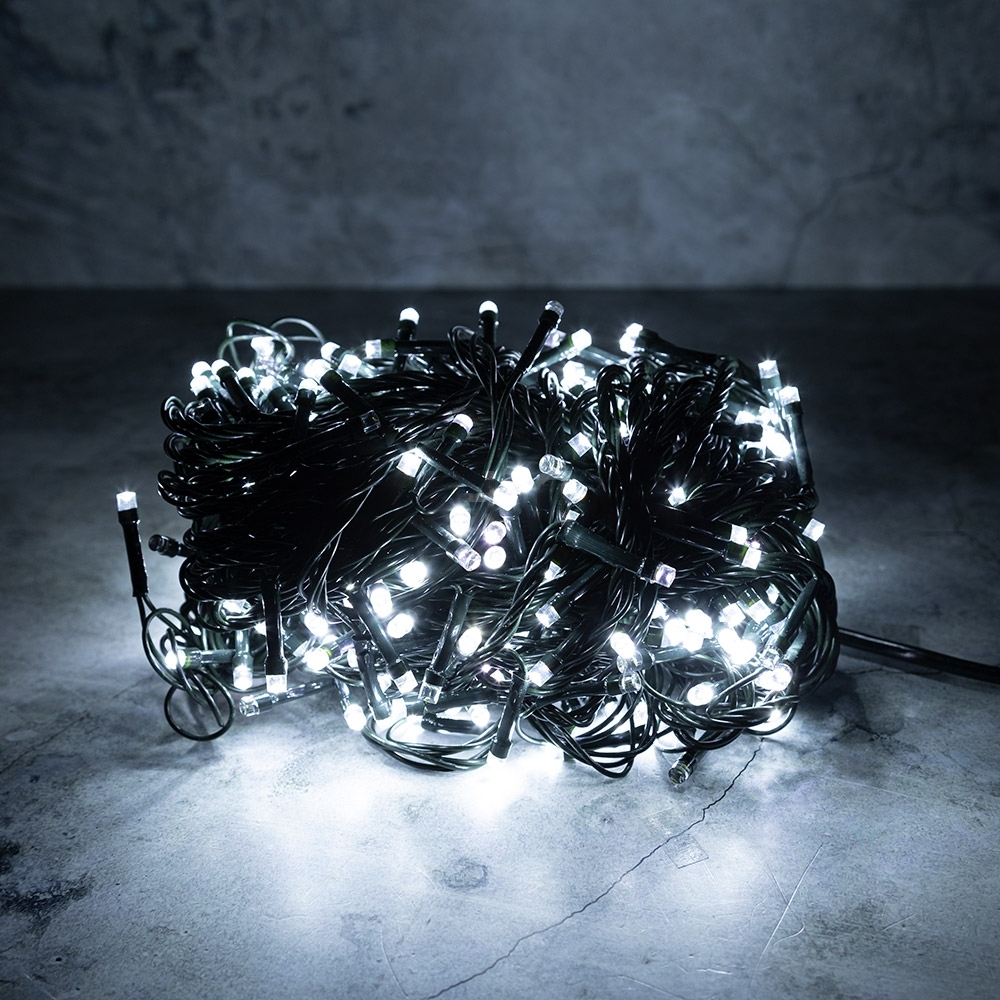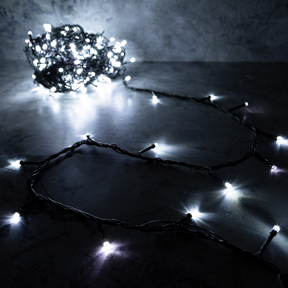 Гирлянда Нить 20 м Белая мерцающая 220 В, 200 LED, Провод Зеленый ПВХ, IP20