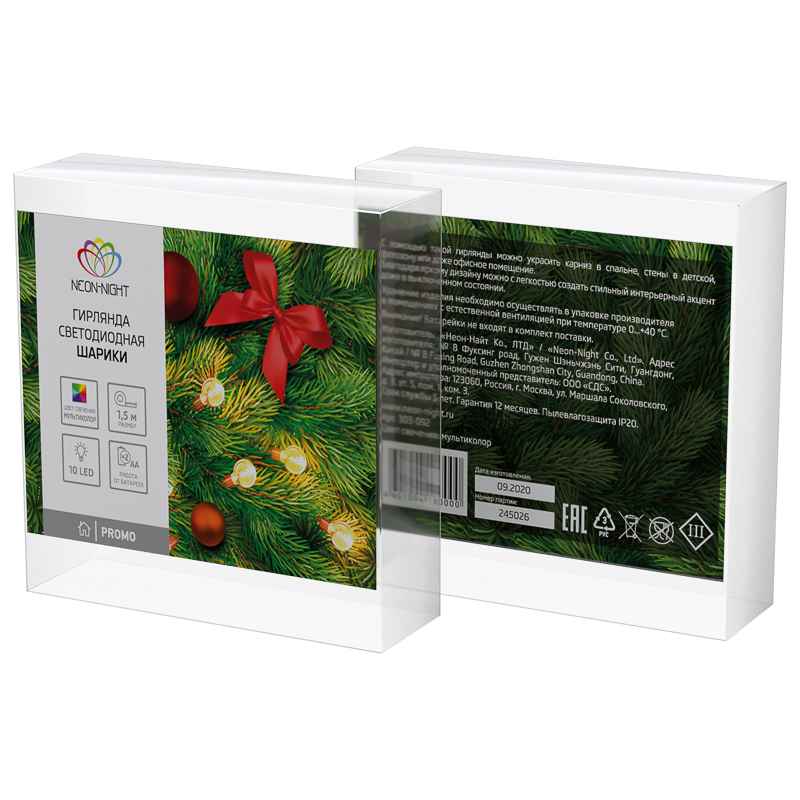 Купить гирлянду «Шарики» 1.5 м, мультиколор, 10 LED, провод прозрачный ПВХ, IP20 в интернет-магазине компании Joyled в Москве.