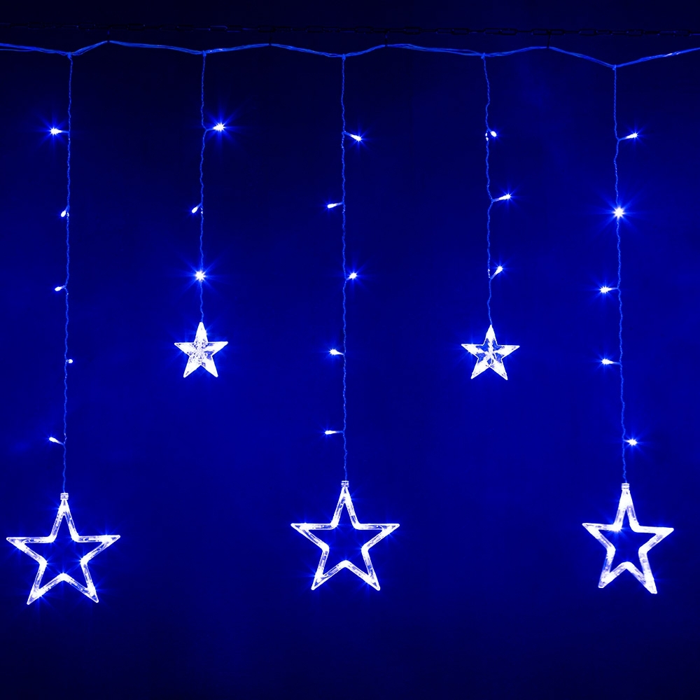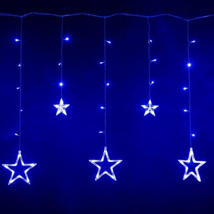 Гирлянда Занавес со звездами 3 м. Синий 220В, 138 LED, Провод Прозрачный ПВХ, Мерцающий, IP20