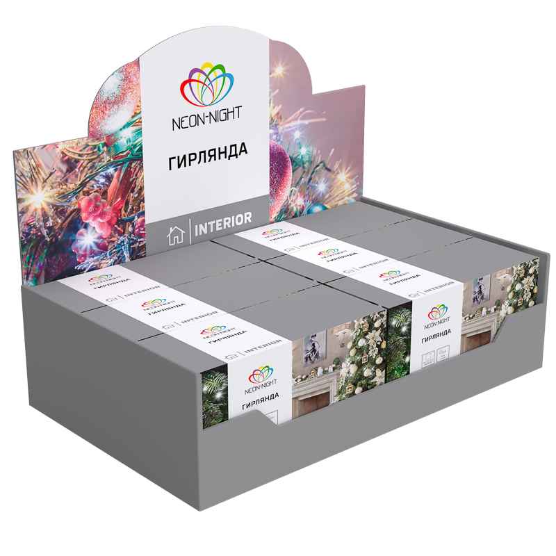 Длина — 10 метров, легко оборачивает стандартную ёлку или большую арку;