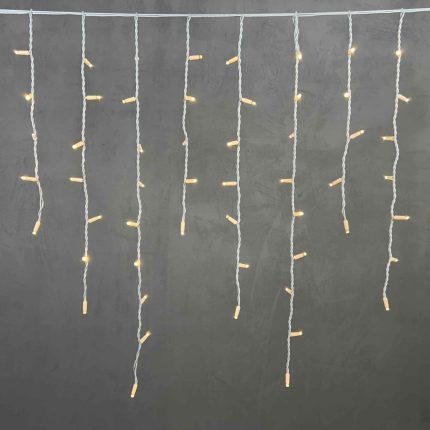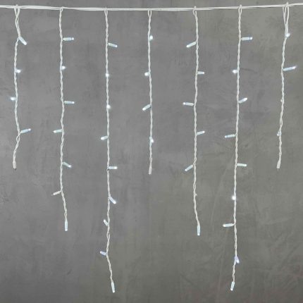 По всей длине гирлянды размещено 600 светодиодов, что обеспечивает высокую плотность и равномерность свечения. Такое количество диодов гарантирует эстетичный результат даже при дневном свете, а в тёмное время суток фасад буквально оживает. Благодаря чередованию длин нитей (от 30 до 70 см), создаётся классический эффект «бахромы» с динамичной тенью и подчёркнутой архитектурой здания.