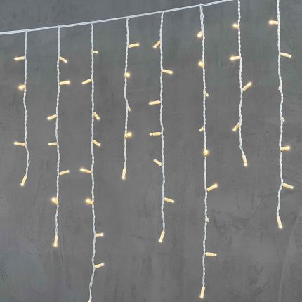 IP44 означает защиту от пыли и брызг воды. Гирлянда подходит для уличного использования в условиях дождя, снега и повышенной влажности. Главное условие — установка в местах, где отсутствует постоянное прямое воздействие струй воды (например, под навесом, карнизом или крышей). Это делает её идеальным решением для сезонного оформления дома или коммерческого объекта.