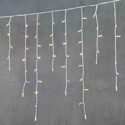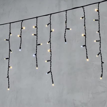 Гирлянда бахрома длиной 15 метров — это готовое решение для оформления фасадов, заборов, террас, перил, деревьев и других архитектурных элементов. Благодаря плотному распределению светодиодов и продуманной длине нитей (от 30 до 70 см), она создаёт яркий, насыщенный и аккуратный световой рисунок.