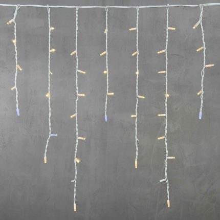 Провод изготовлен из морозостойкого белого каучука толщиной 2.3 мм. Это профессиональный материал, устойчивый к низким температурам (до −25 °C), ультрафиолету и механическим нагрузкам. Белый цвет делает провод незаметным на светлых фасадах и позволяет гармонично вписать гирлянду в архитектуру без лишнего контраста.
