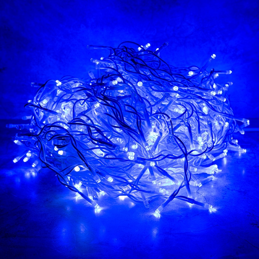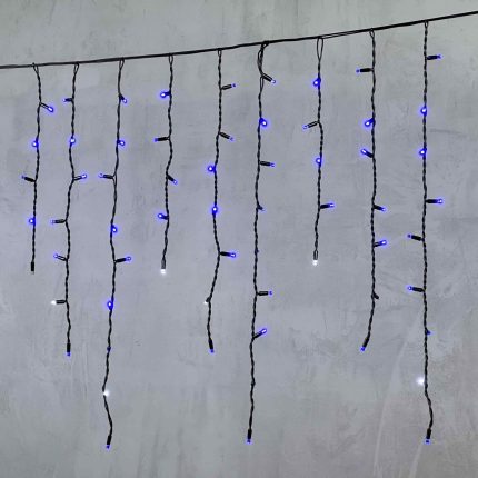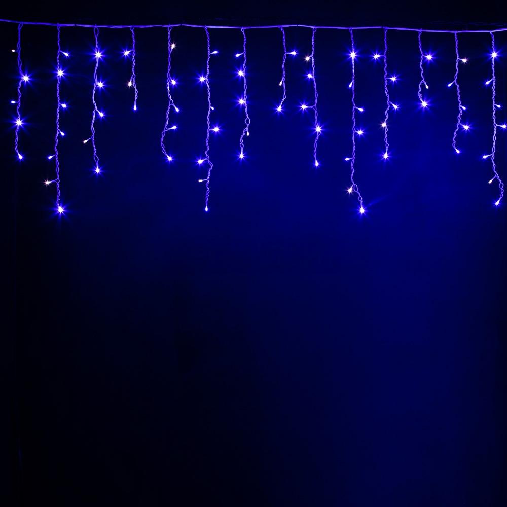 Гирлянда бахрома длиной 15 метров с синим светом и эффектом мерцания. 600 диодов, белый морозостойкий провод, защита IP44. Готова к подключению. Подходит для оформления фасадов, деревьев и елей.