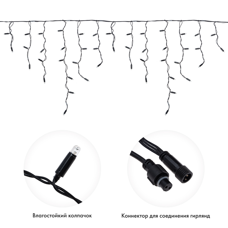 Гирлянда Бахрома 2,4×0,6 м Тепло-белый Статика, 88 LED, Чёрный ПВХ, IP65, NN