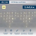 Гирлянда Бахрома 2,4×0,6 м Тепло-белый, 88 LED, Белый ПВХ, IP65, NN