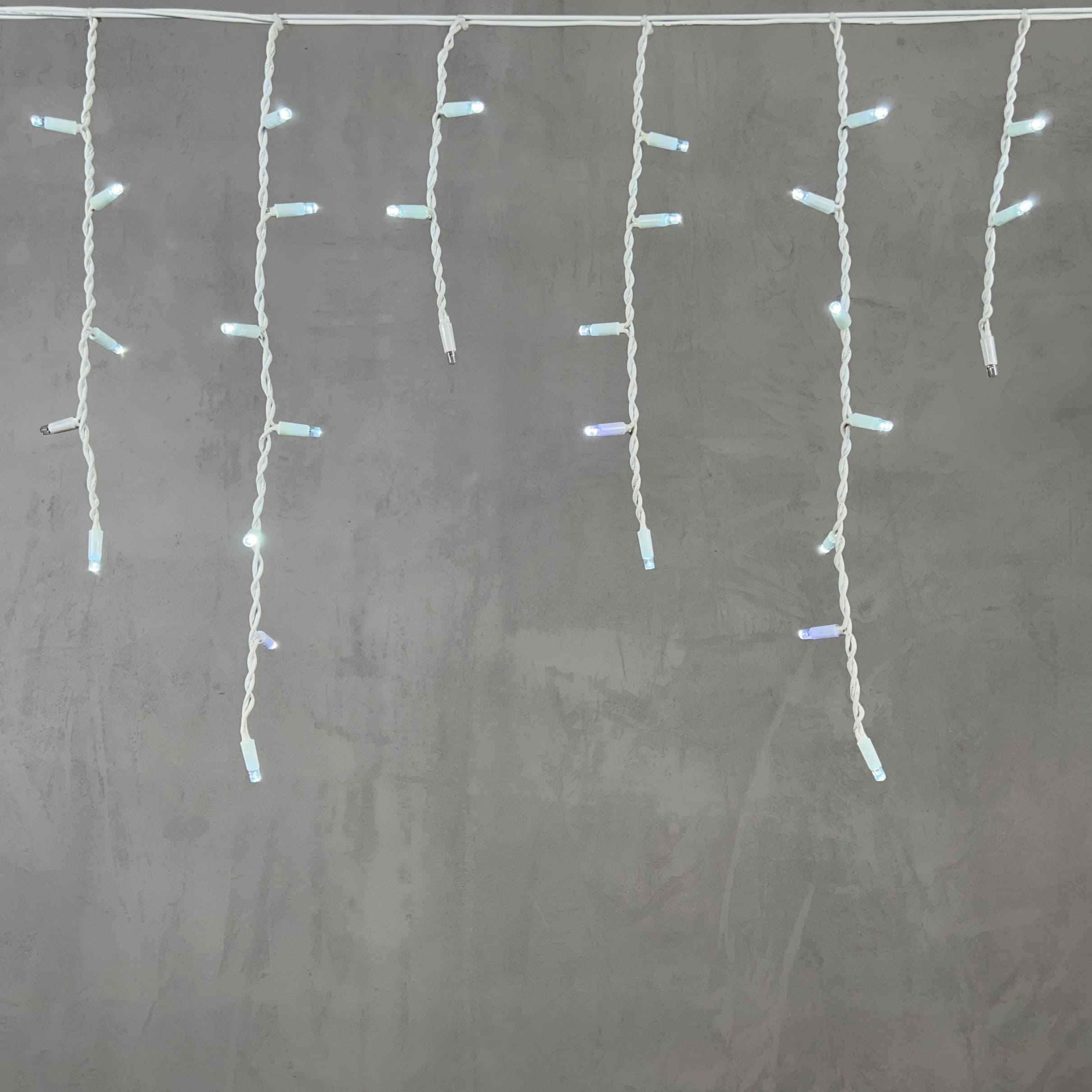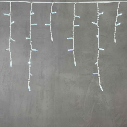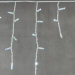Премиальная уличная гирлянда бахрома 3,1 м с белым свечением и эффектом мягкого мерцания. Провод из белого каучука 3.3 мм, 120 светодиодов, IP65. Подходит для оформления фасадов и карнизов.
