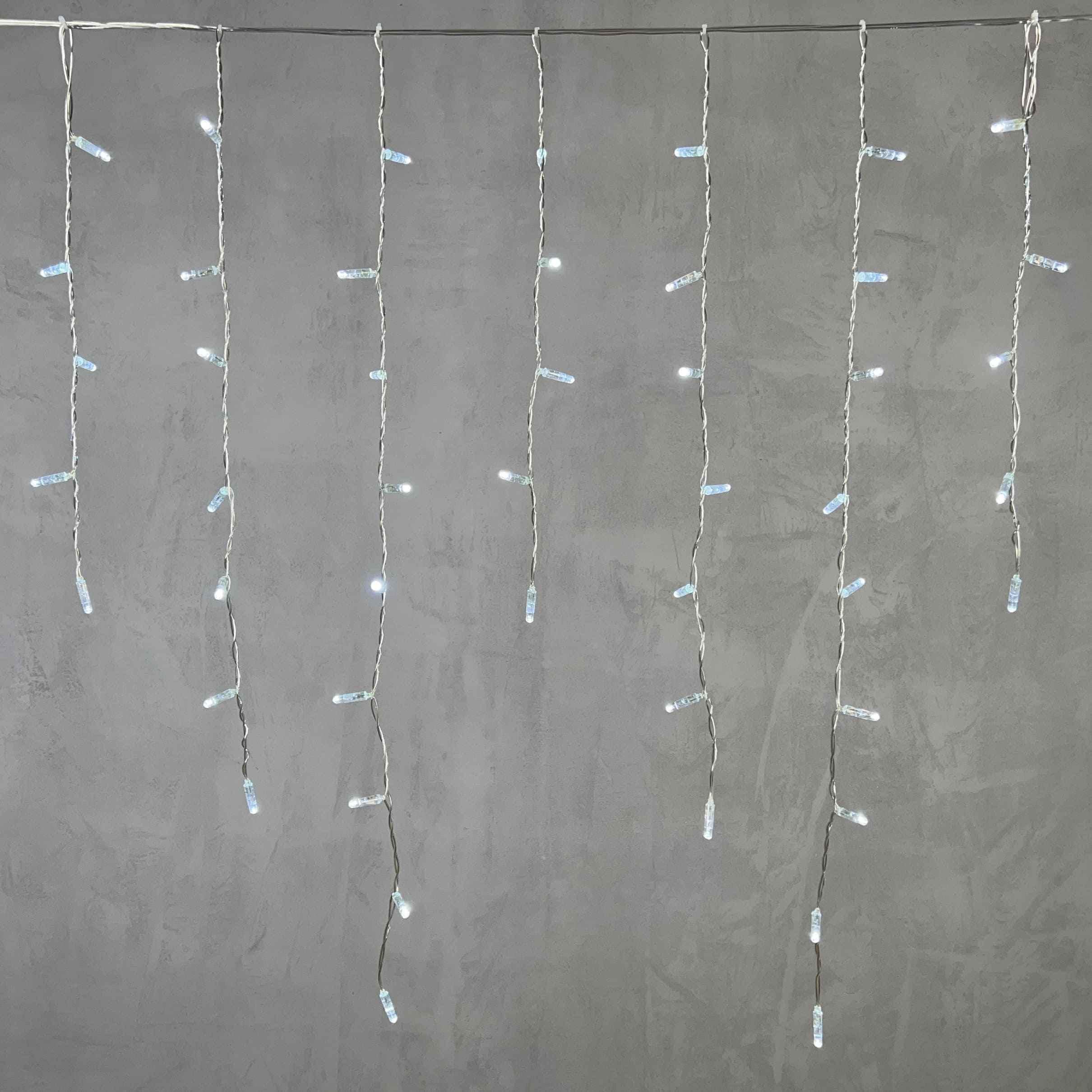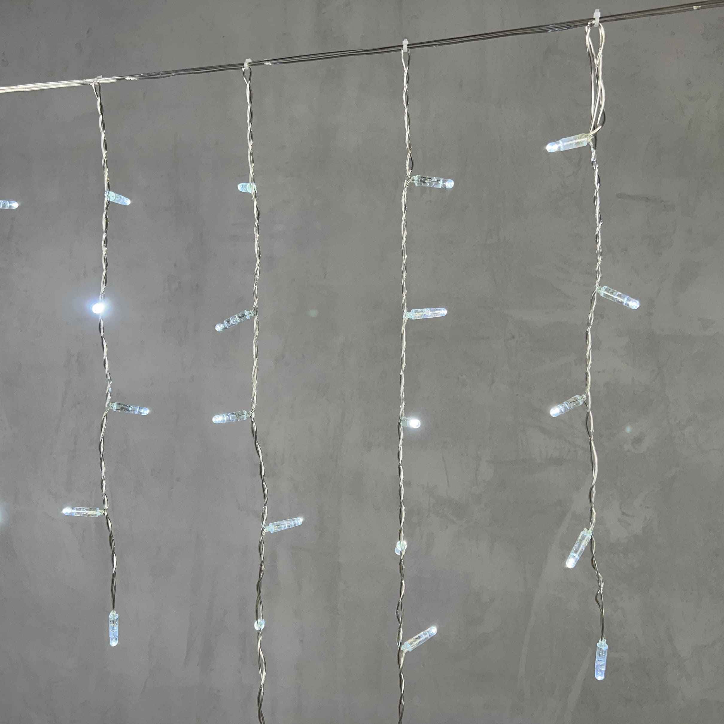 Гирлянда бахрома LTC длиной 3,2 м с белым свечением и прозрачным ПВХ-проводом. Оснащена 168 светодиодами, защищена по стандарту IP65. Идеальна для фасадов и уличного декора.