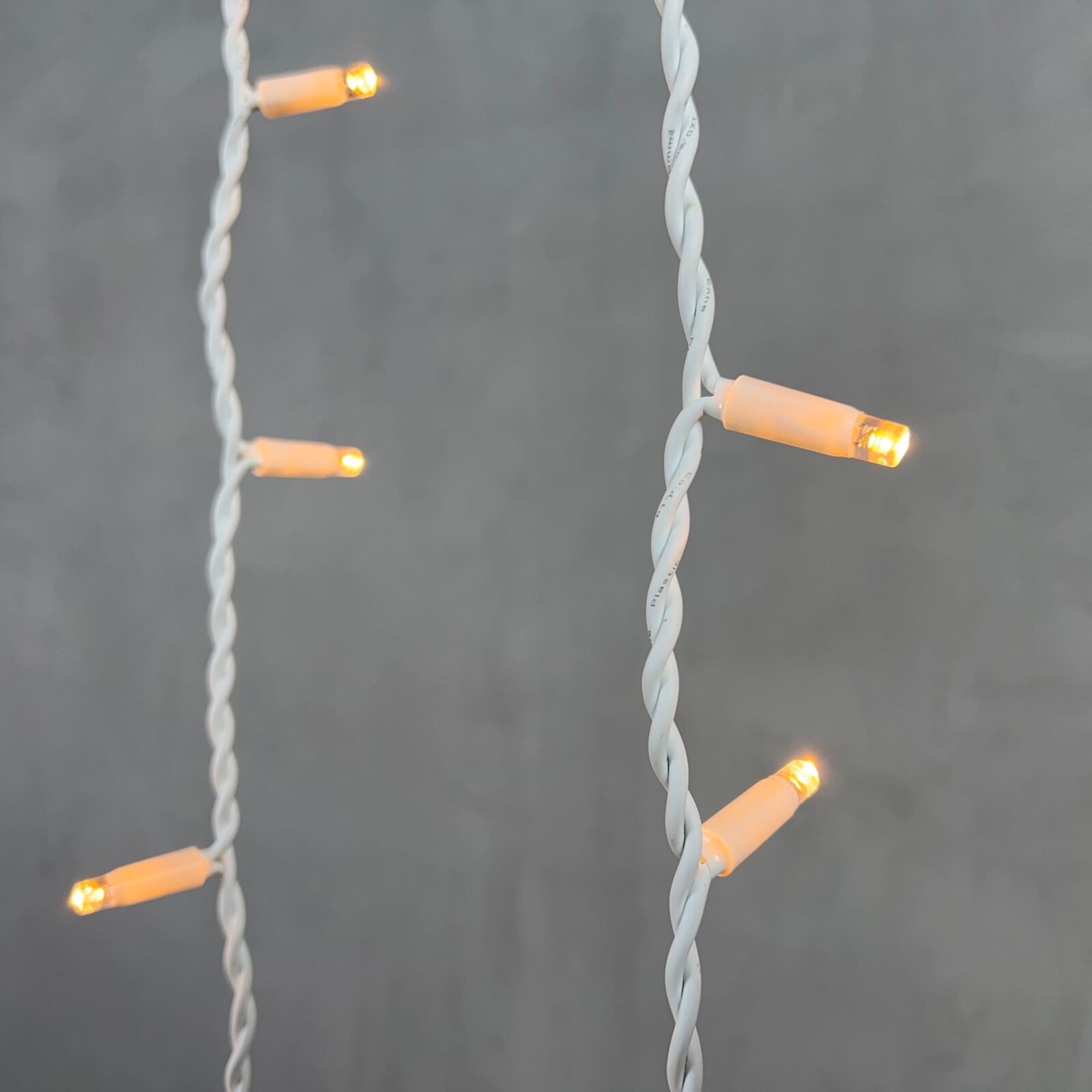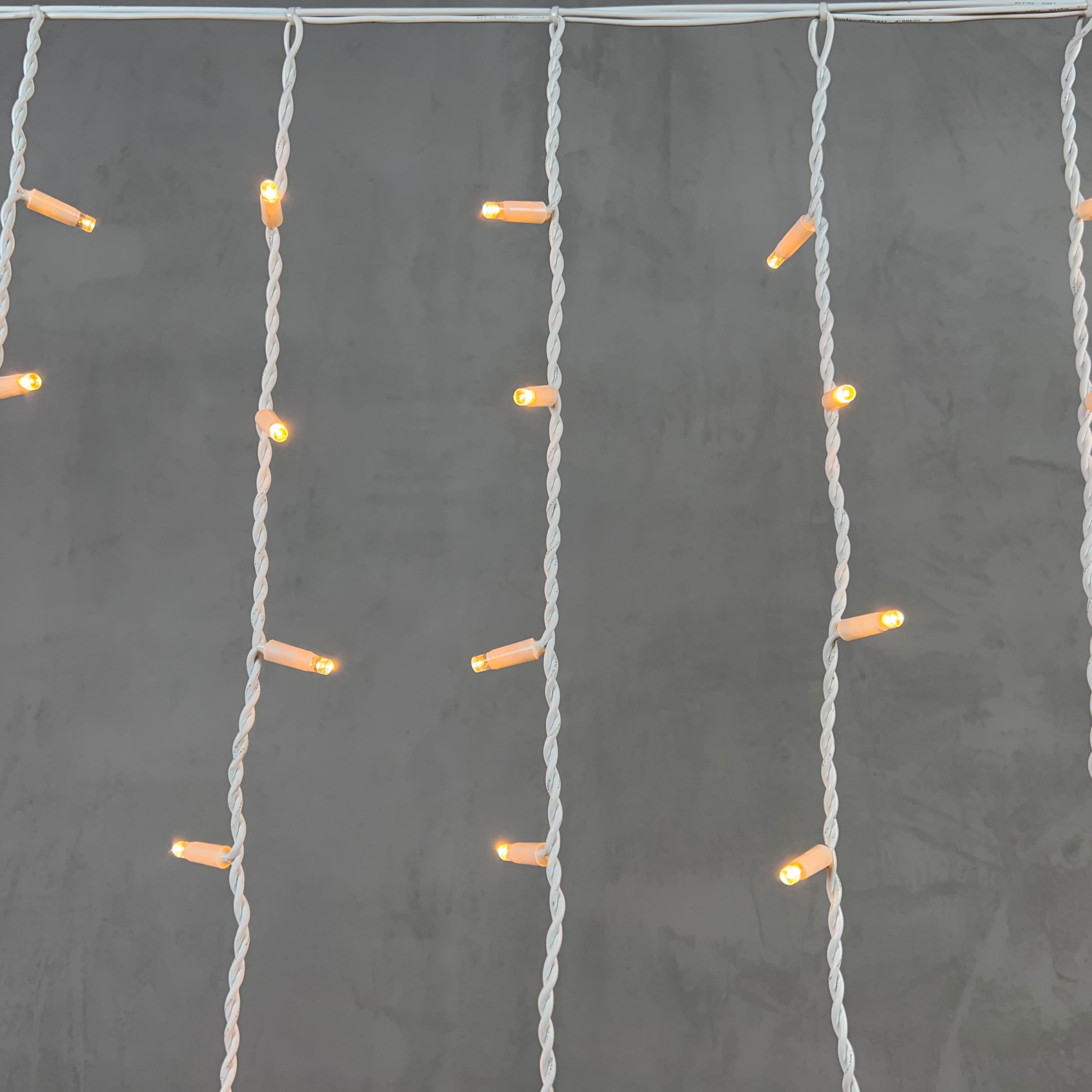 Профессиональная гирлянда-бахрома с экстра тёплым свечением и высокой пылевлагозащитой. Длина 3,2 м, высота 0,9 м, 168 LED. Прочный белый провод из каучука 3,3 мм. Подходит для фасадов, террас и карнизов.