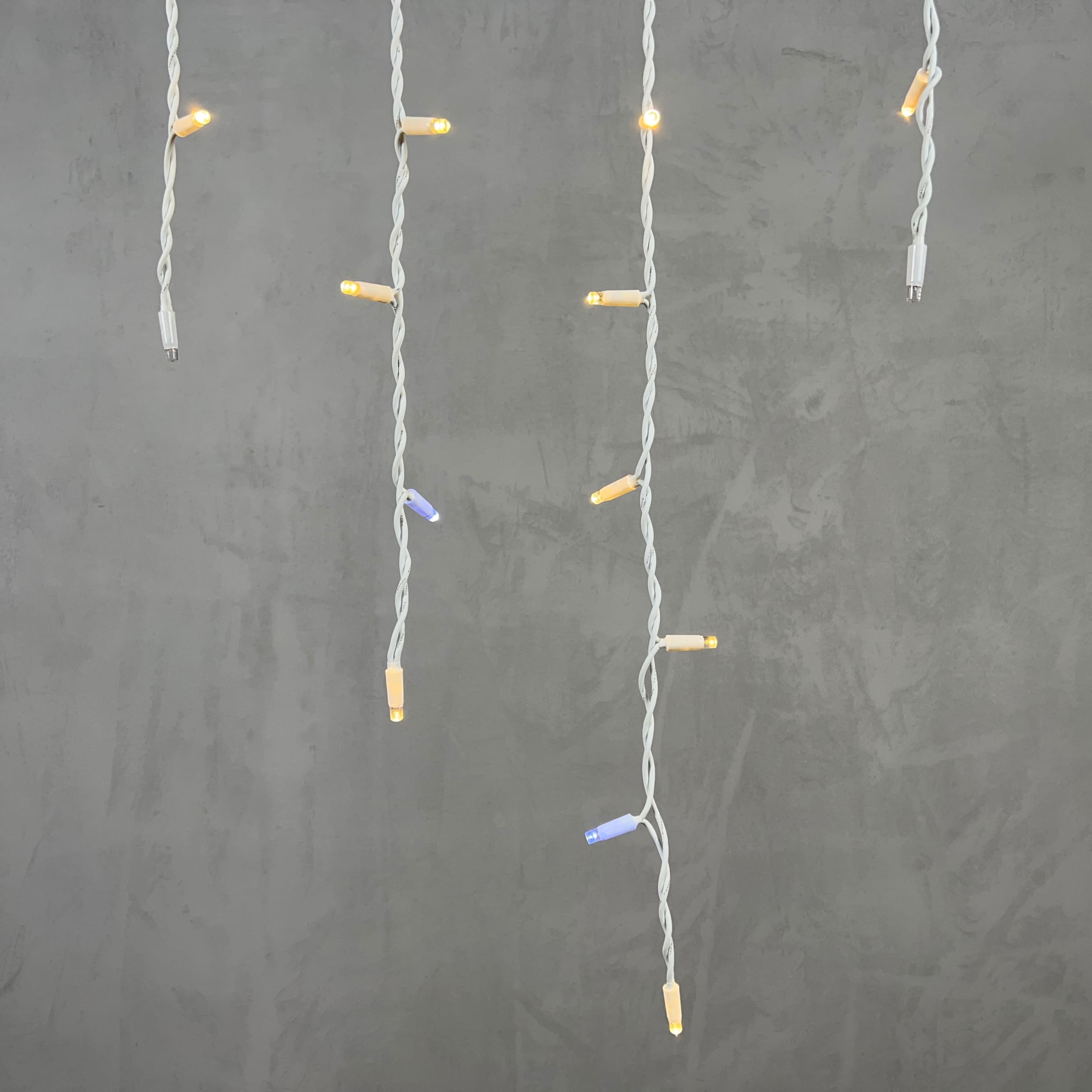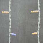 Провод выполнен из каучука 3.3 мм — это профессиональный, прочный и морозостойкий материал. Белый цвет делает провод почти незаметным на светлой штукатурке, фасадах домов, балконах и ограждениях. Это эстетичное решение для тех, кто не хочет, чтобы днём гирлянда выделялась на фоне здания.