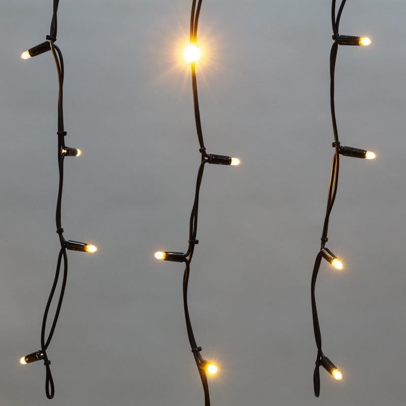 Профессиональная гирлянда-бахрома 3,2×0,6 м с тёплым белым свечением. Надёжный каучуковый провод 3,3 мм, 88 светодиодов, IP67. Для оформления фасадов, заборов и перил в любую погоду.