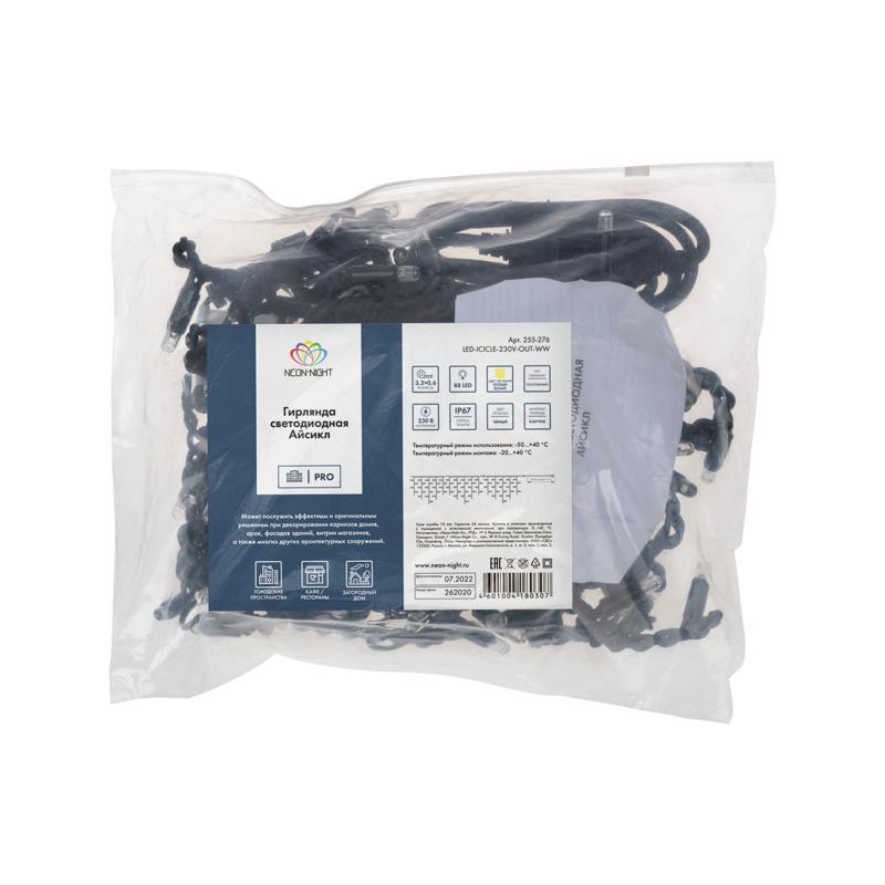Длина 3,2 метра и высота нитей до 60 см позволяют гибко использовать гирлянду как в частном домостроении, так и на коммерческих объектах. 24 луча равномерно распределяют свет, придавая линии законченный и аккуратный вид. Гирлянды удобно стыкуются по фасаду, периметру ограждения или по козырькам.