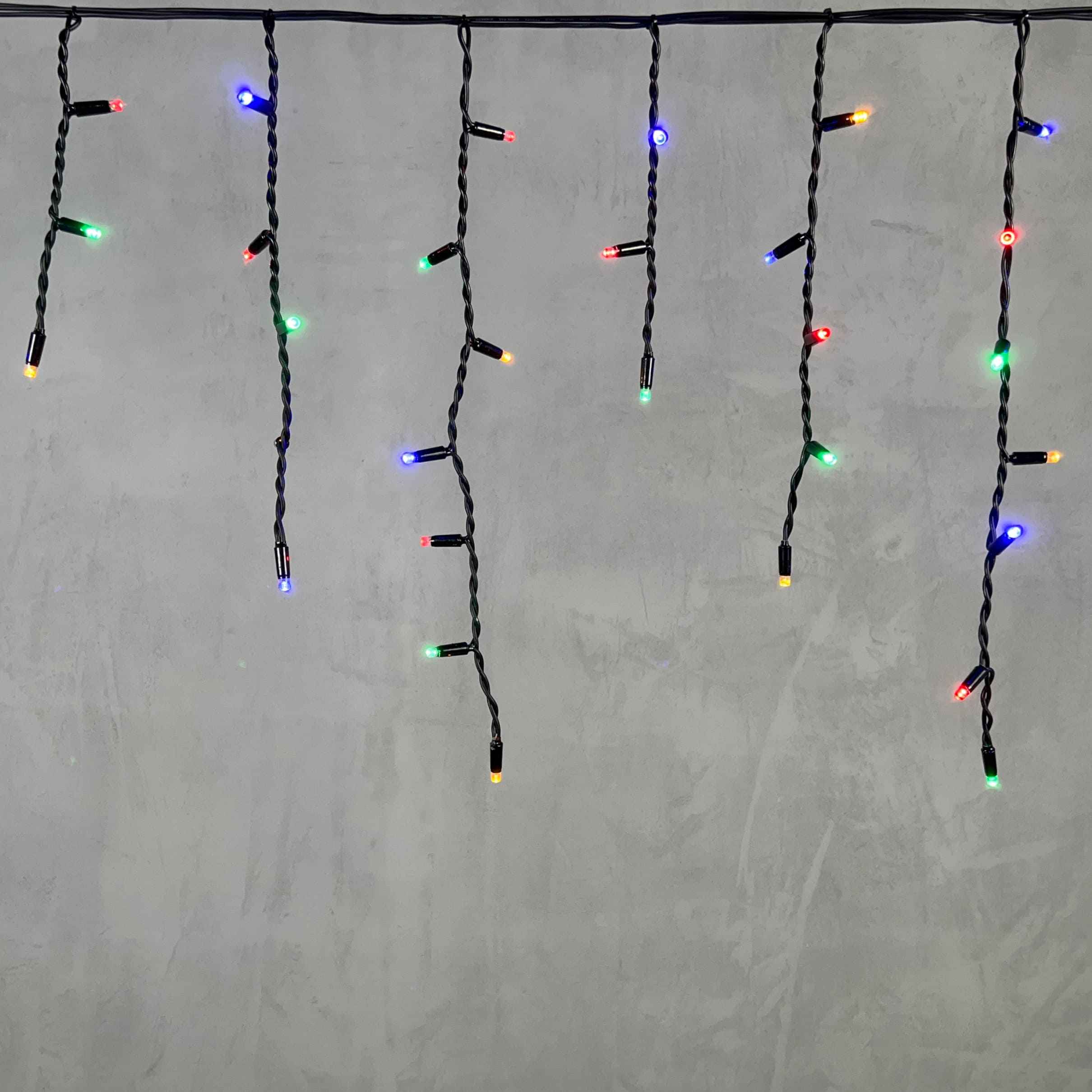 Гирлянда Бахрома 3,1 м Разноцветная Статика, 120 LED, Чёрный Каучук, IP65, LTC