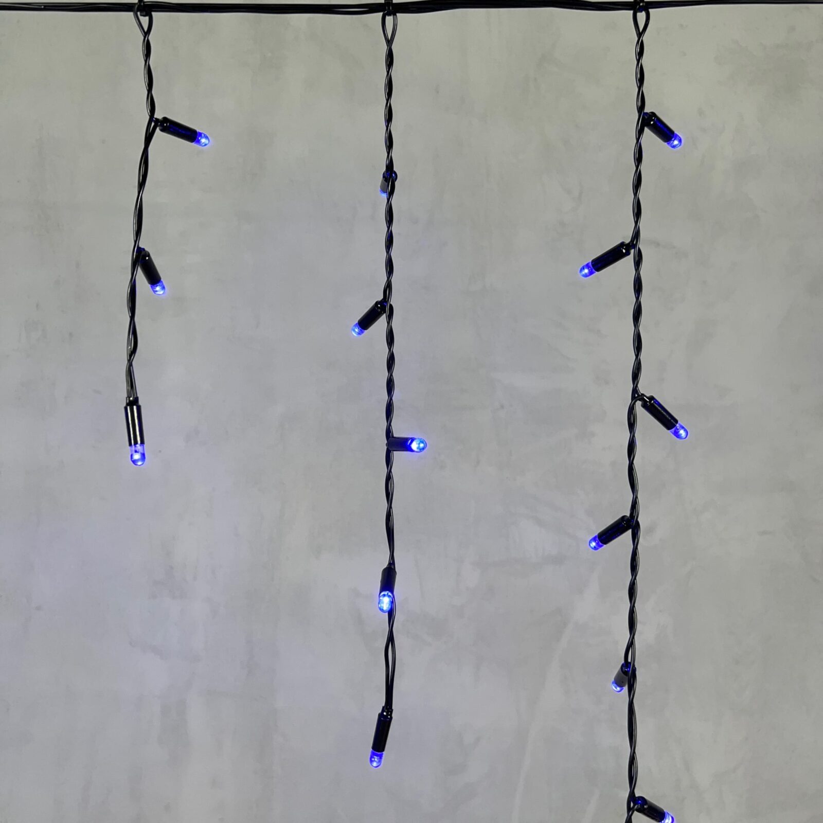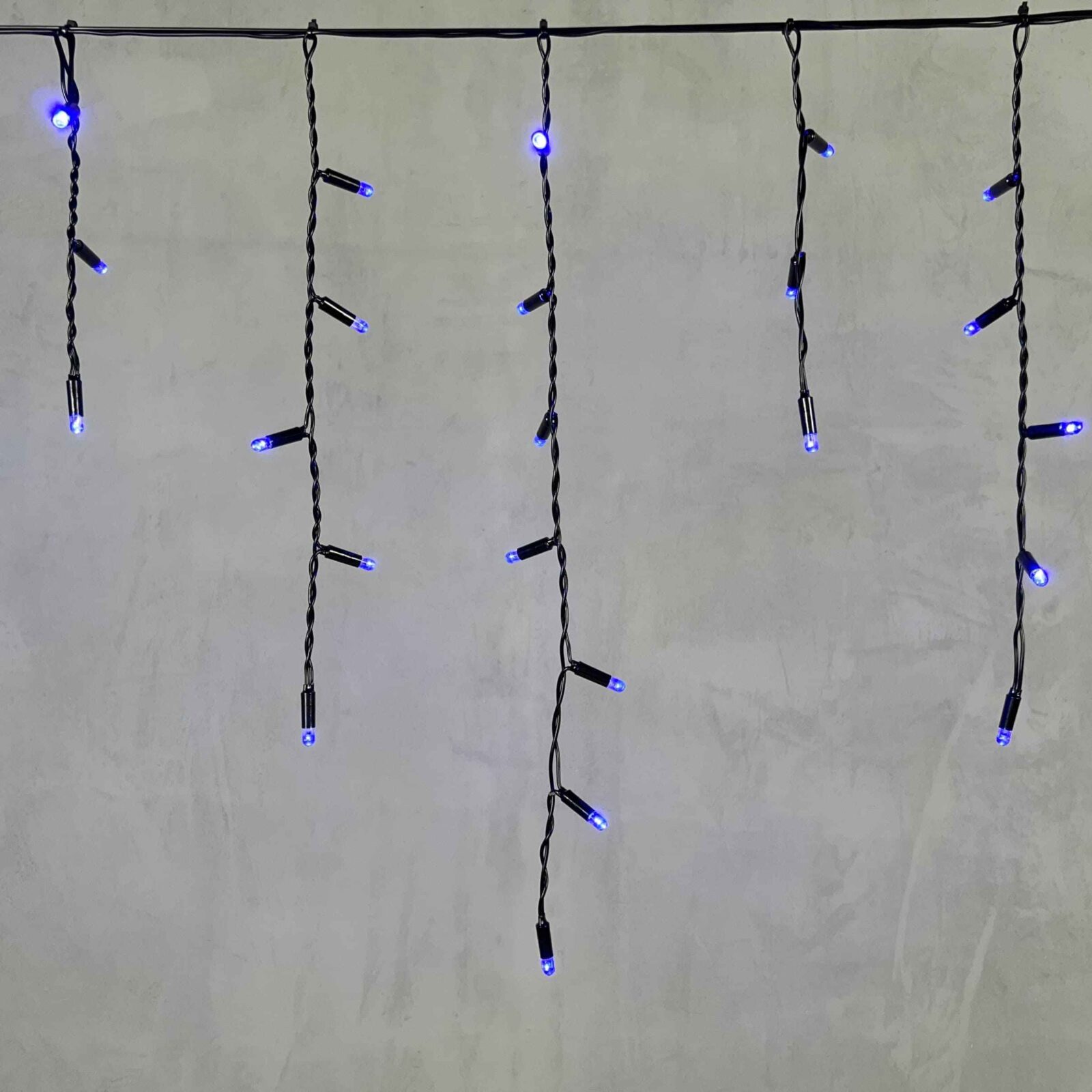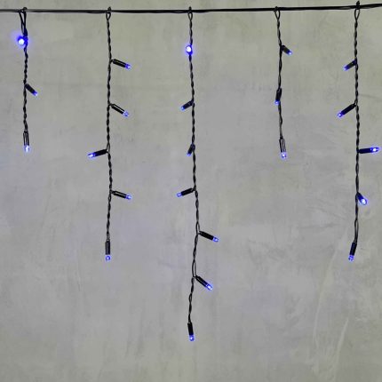 Эффектная гирлянда-бахрома с насыщенным синим свечением и прочным чёрным ПВХ-проводом. Длина 3,1 м, 120 светодиодов, защита IP65. Подходит для улицы: крыши, фасады, веранды. Надёжно работает при температуре от −30 °C. Соединяется до 10 гирлянд.