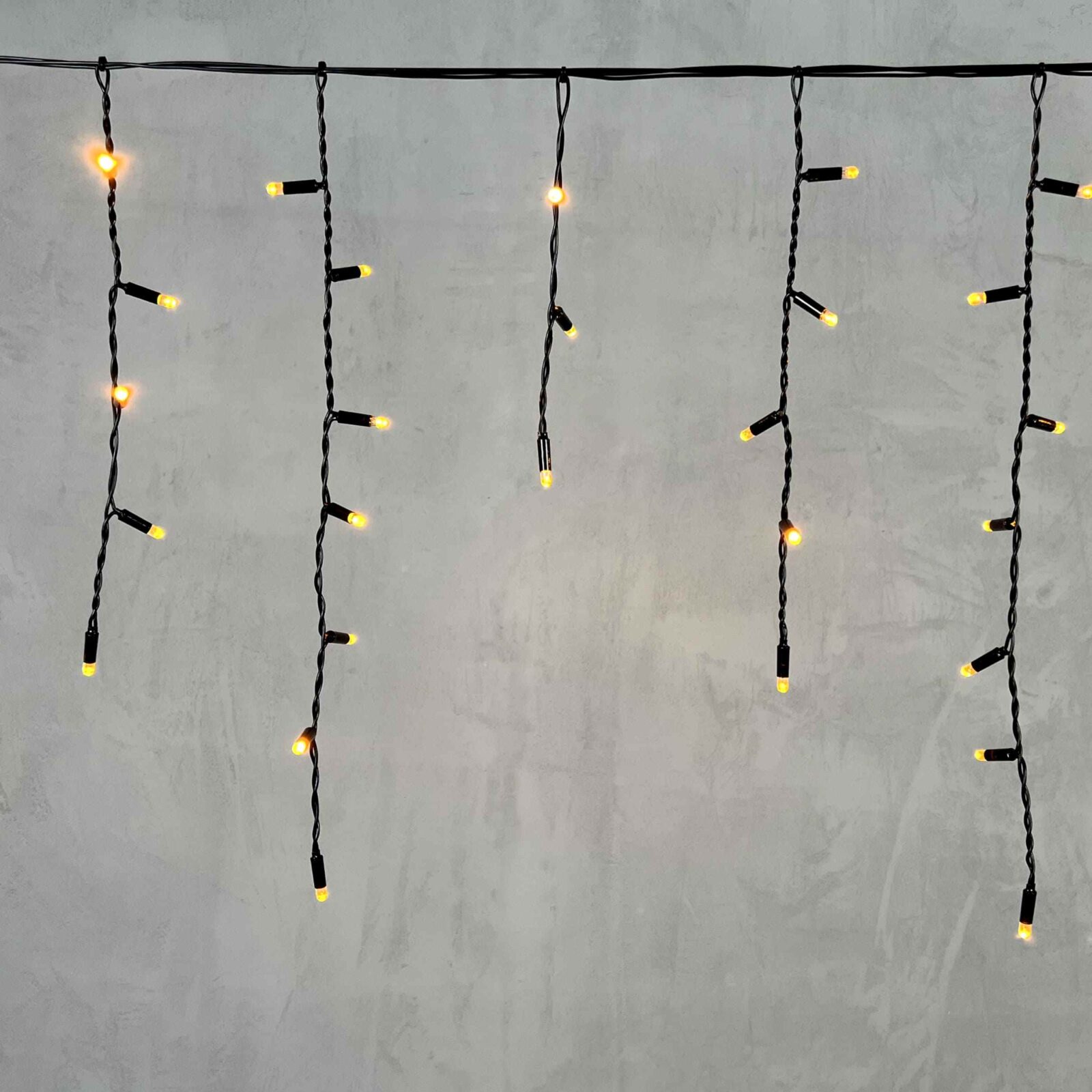 Яркая гирлянда-бахрома с жёлтым свечением — эффектный способ украсить фасад, крышу или веранду. Длина 3,1 м, 120 светодиодов, прочный чёрный ПВХ-провод, защита IP65. Подходит для улицы. Соединяется в цепь до 10 гирлянд. Температурный режим −30…+40 °C.