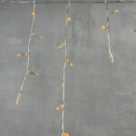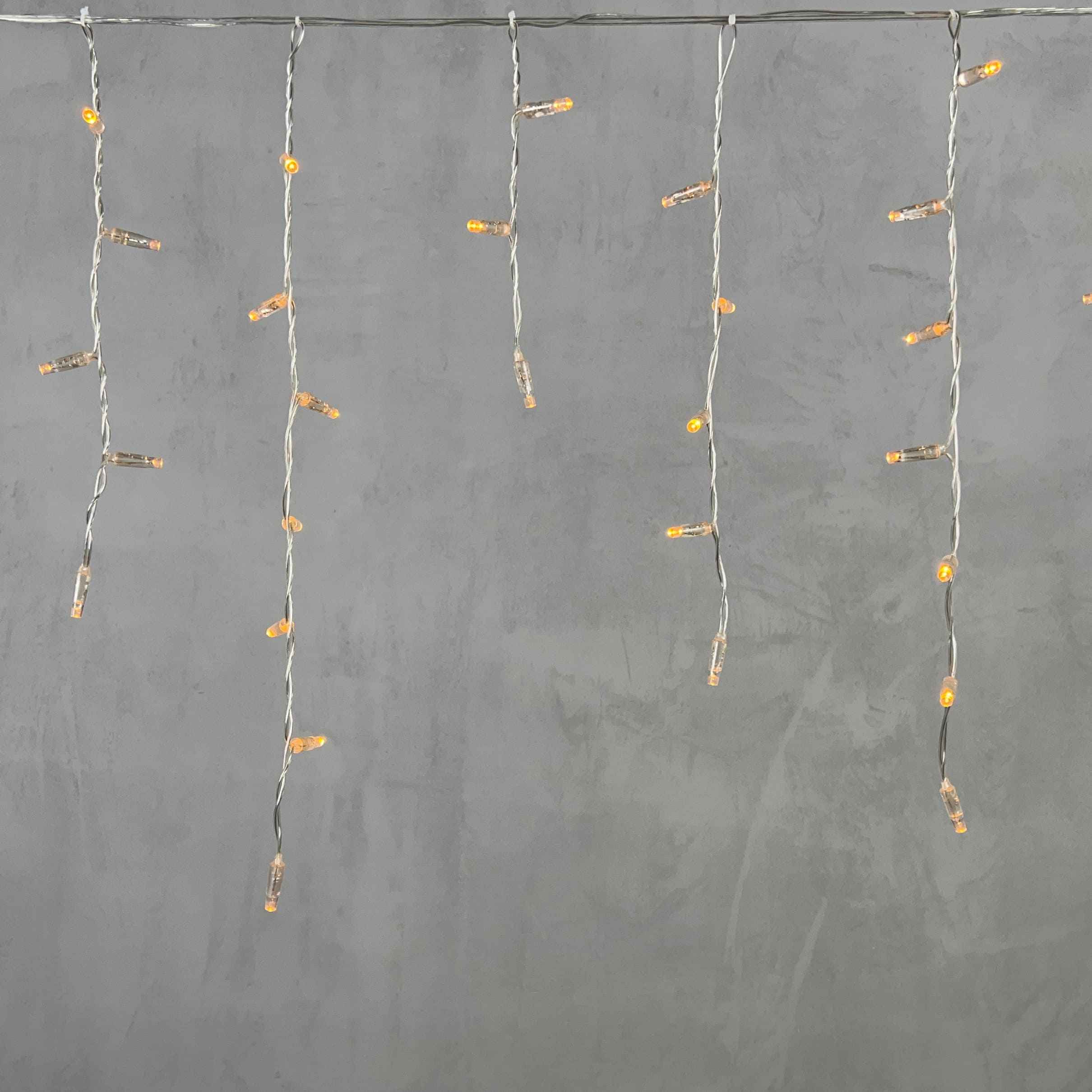 Гирлянда длиной 3,1 м и высотой 0,5 м покрывает стандартный пролёт фасада или входной группы. 120 диодов размещены с плотным шагом — благодаря этому создаётся равномерное свечение по всей длине. Колпачки рассеивают свет, и он становится менее резким и более уютным. Это особенно важно, если гирлянда висит на уровне глаз.