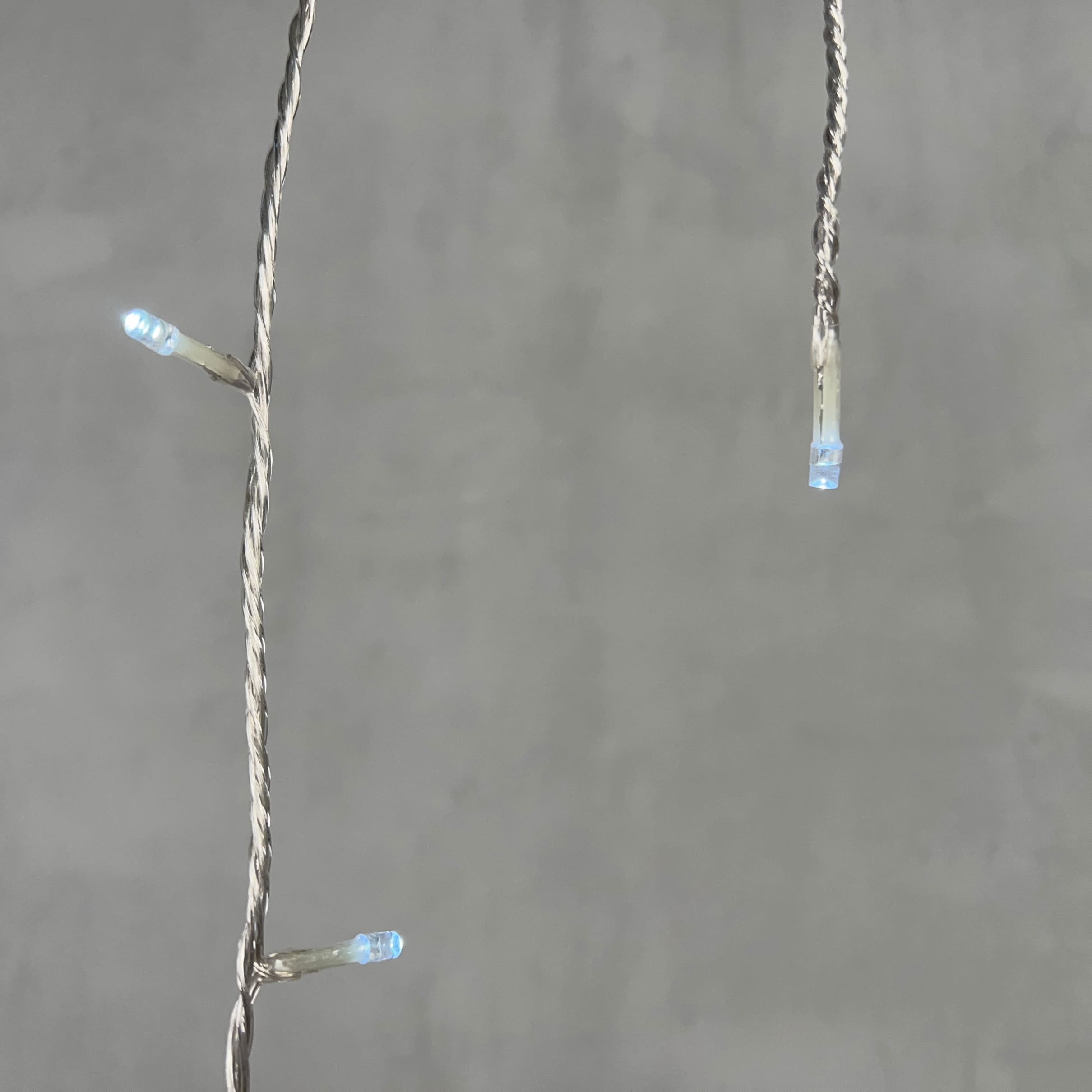 Универсальная гирлянда-бахрома белого свечения на батарейках — решение для оформления фасадов, окон и беседок без подключения к сети. Длина 3 метра, 100 светодиодов, два режима свечения и защита IP65. Идеальна для праздников, декораций и зимнего уличного использования.