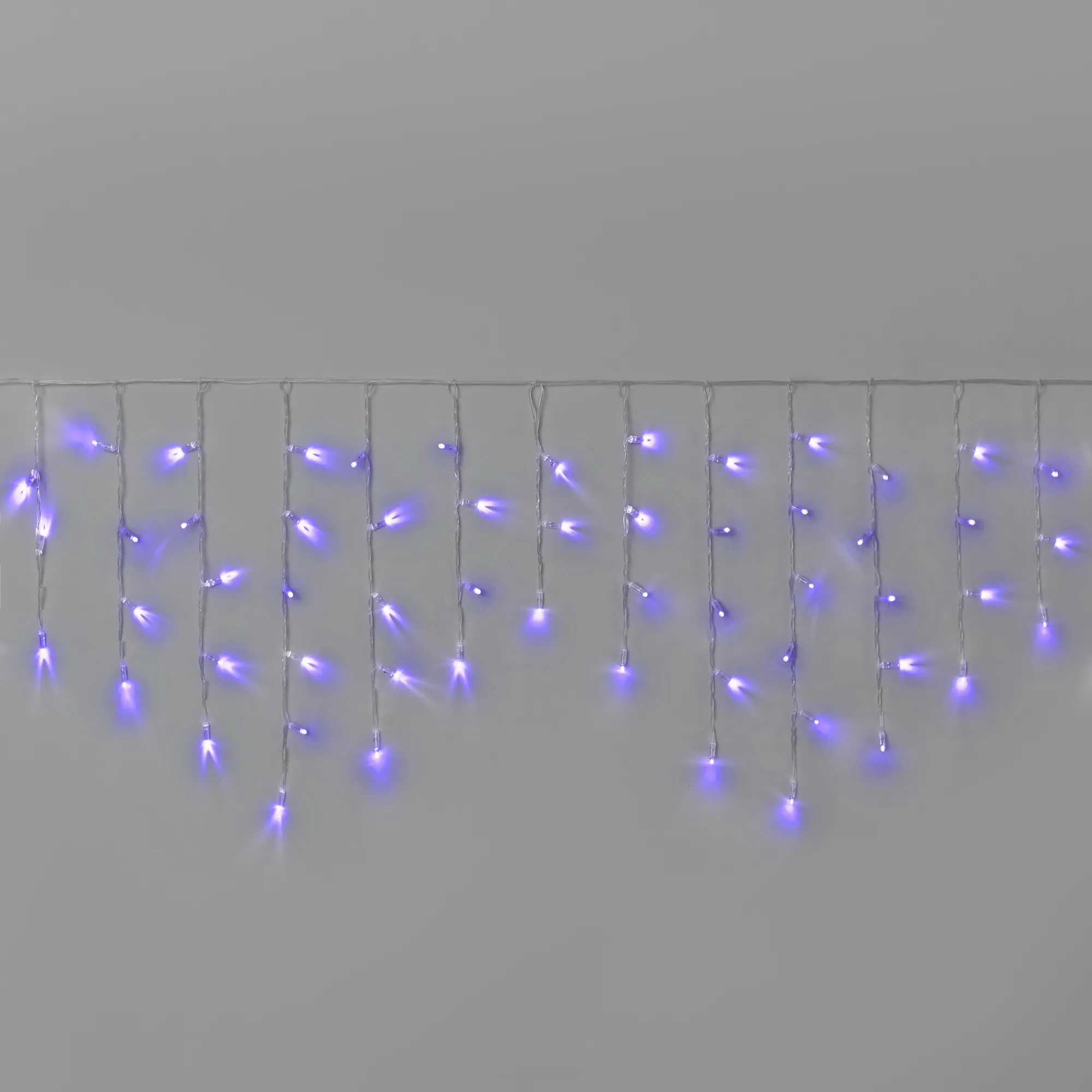 Фиолетовая бахрома длиной 3 м с 108 LED — эффектная подсветка фасада, перил и заборов. Прозрачный ПВХ-провод, IP65, свечение статичное, шаг нитей — 12,5 см. Работает от сети, соединяется в цепь до 10 гирлянд. Подходит для круглогодичного уличного использования.
