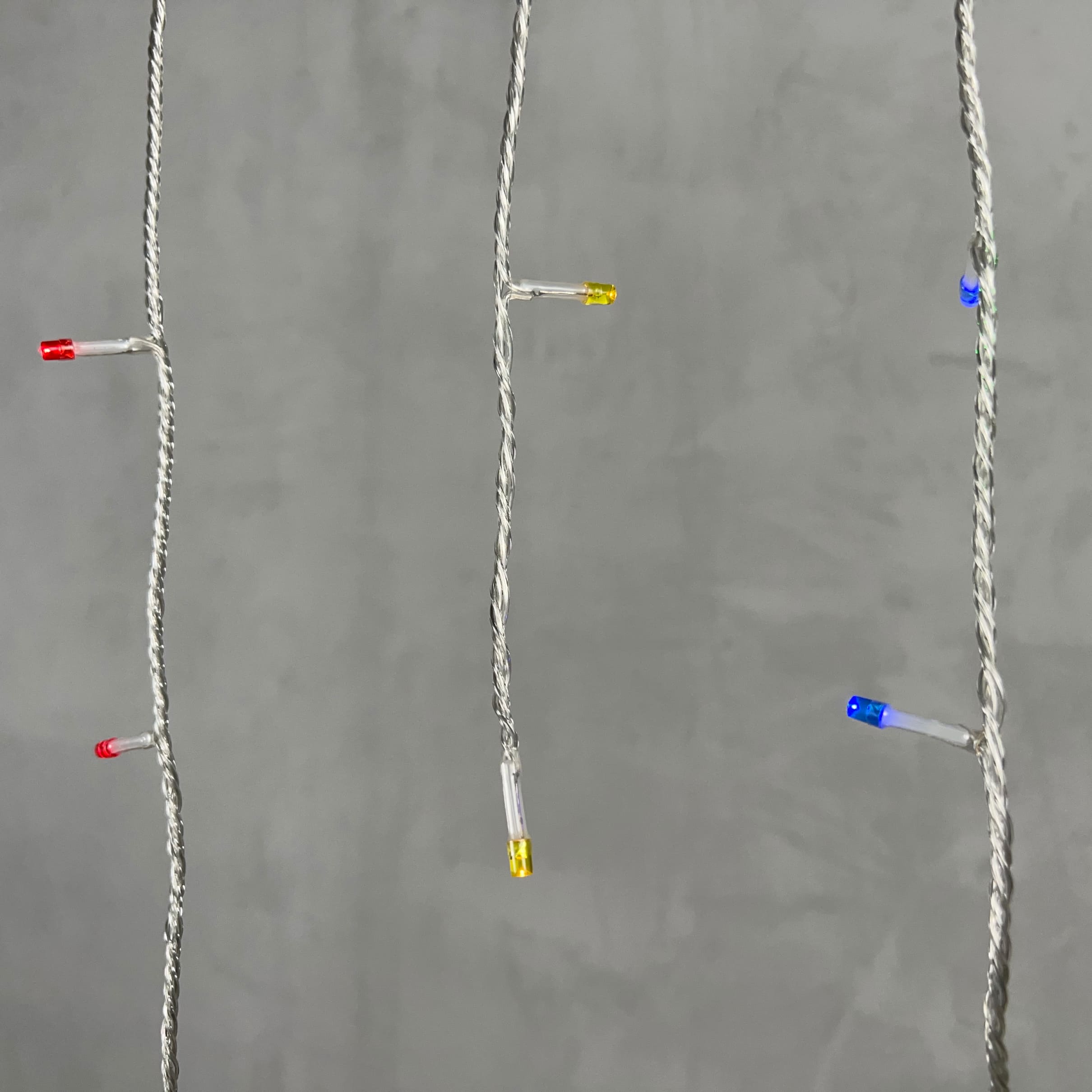 Гирлянда Бахрома 3 м Разноцветная Статика, 100 LED, Прозрачный Силикон, IP65, LTC (на батарейках, с таймером)