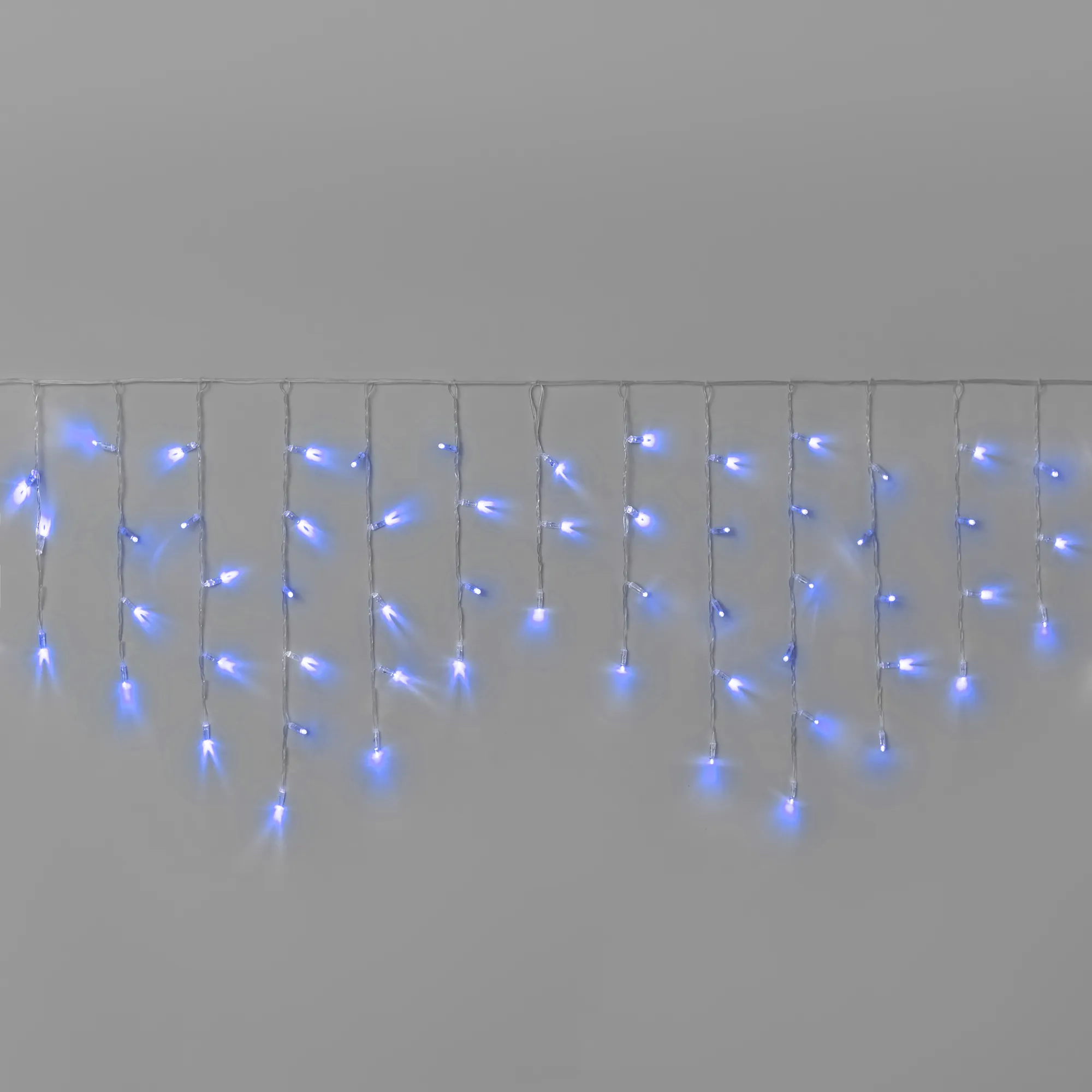 Синий цвет — универсальная классика в уличной подсветке. Эта гирлянда-бахрома подходит для оформления фасадов, крыш, навесов и заборов. Компактный размер и прозрачный провод делают её незаметной днём, а надёжная защита IP65 — устойчивой к дождю, снегу и морозу. Подходит для цепного подключения.