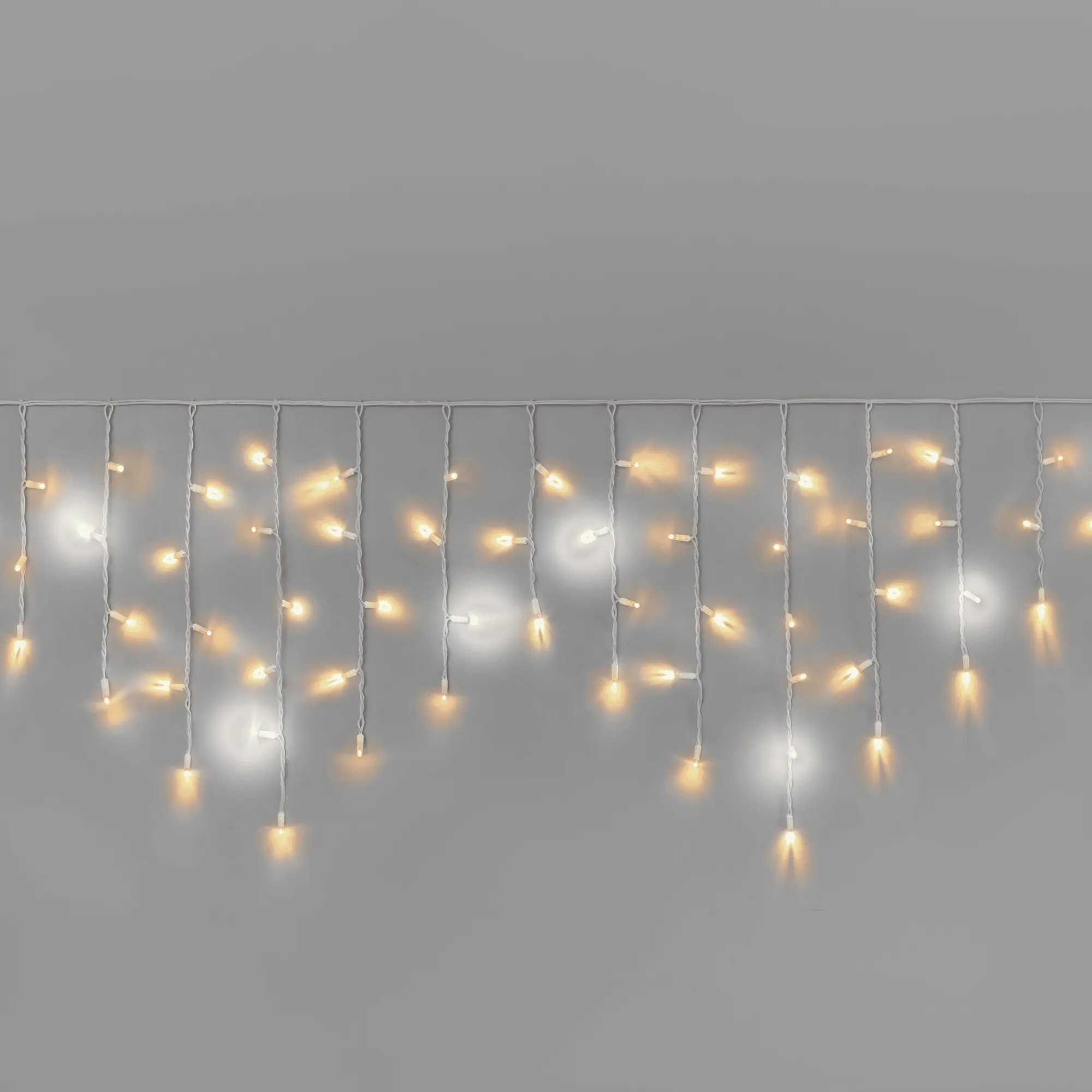Профессиональная уличная гирлянда-бахрома 3×0,6 м с эффектом тёплого белого мерцания. 108 диодов, белый каучуковый провод, степень защиты IP65. Подходит для подсветки фасадов, заборов и перил. Безопасна и долговечна.