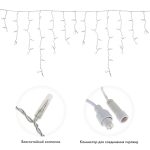 Гирлянда Бахрома 4,8×0,6 м Белая с мерцанием, 230 В, 176 LED, Прозрачный ПВХ, IP65