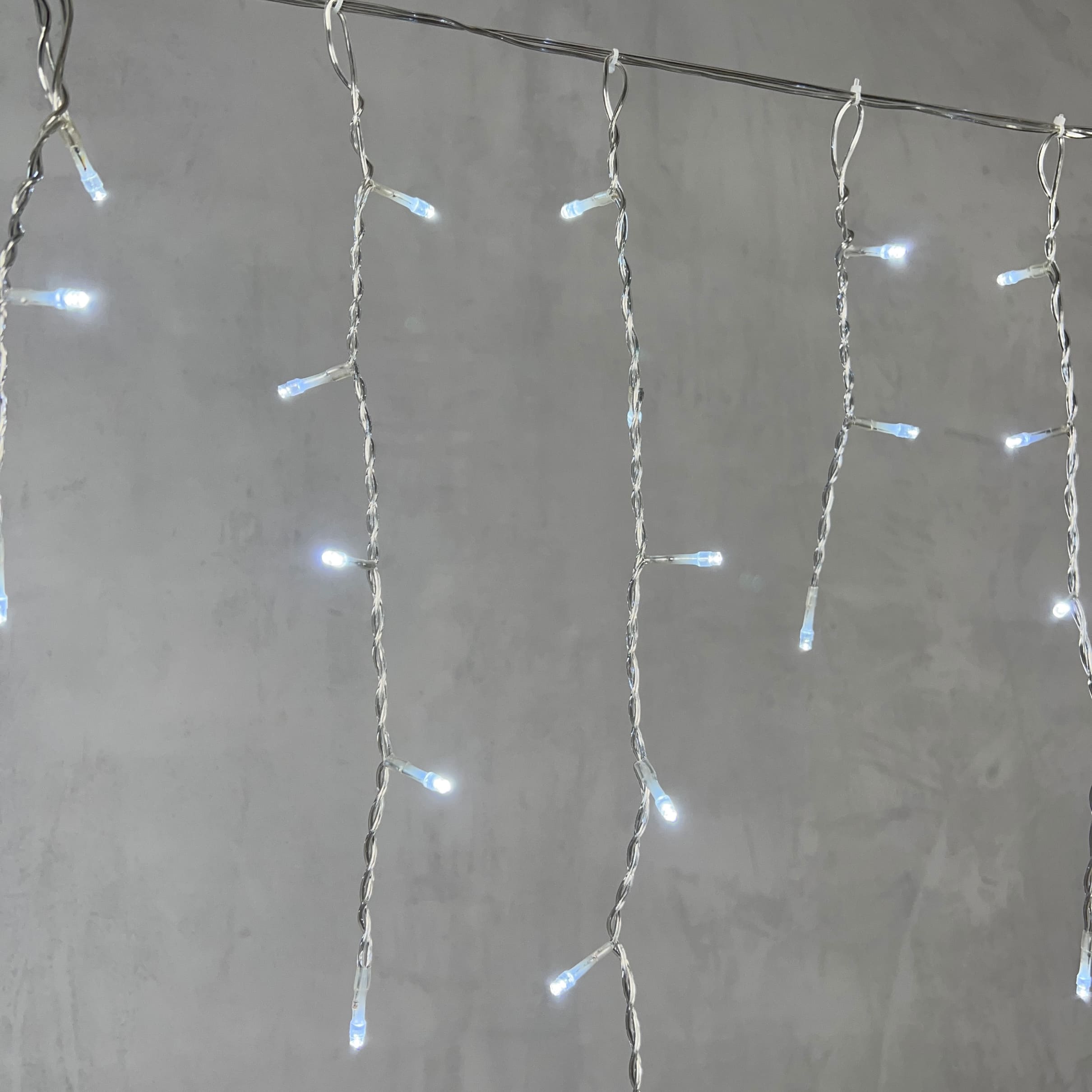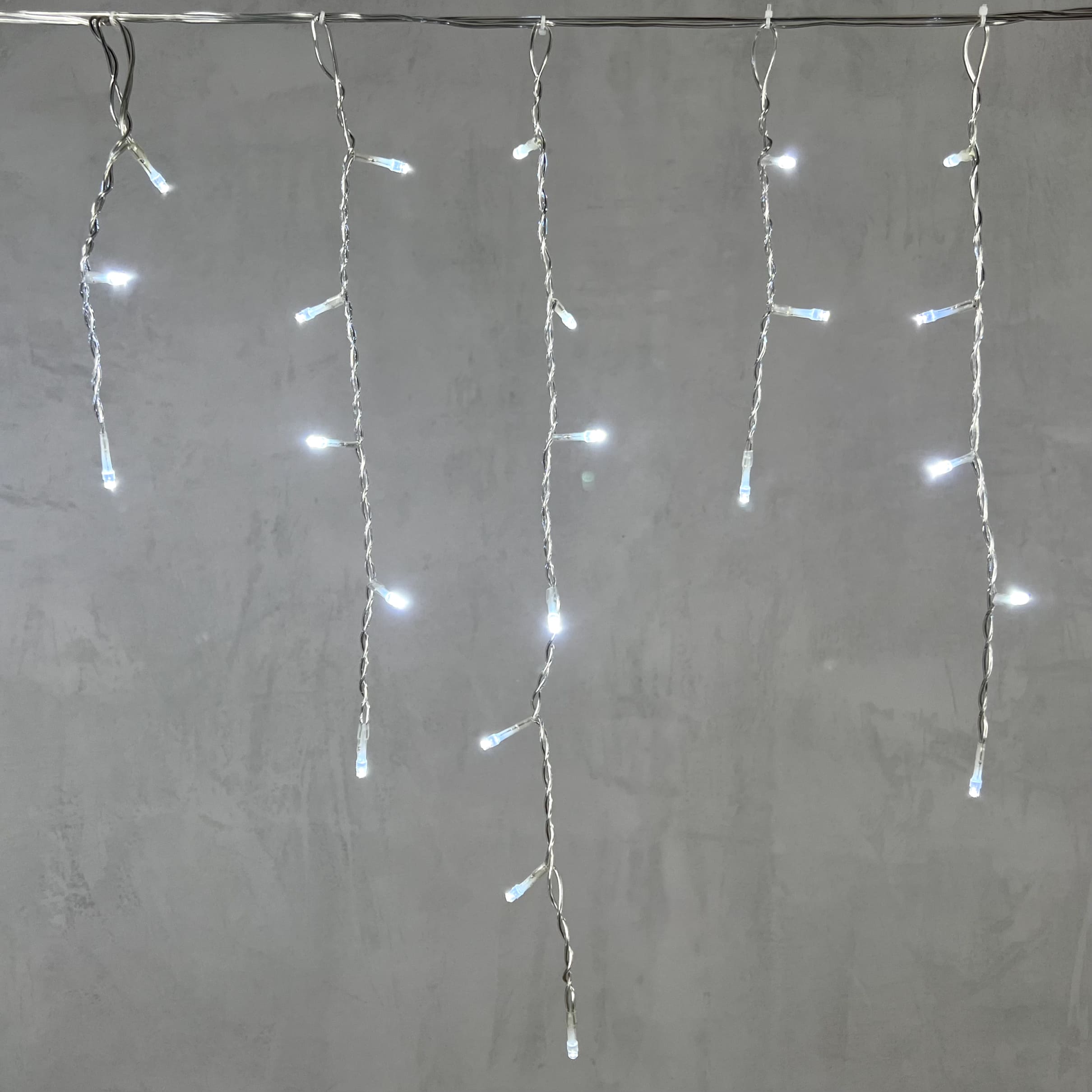 Уличная гирлянда бахрома длиной 4,9 м с 240 белыми светодиодами. Прозрачный ПВХ-провод, защита IP54. Эффектное решение для фасадов, балконов и навесов в сезон праздников.