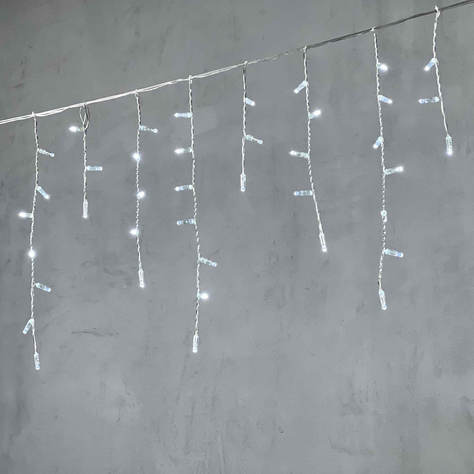 Провод выполнен из прозрачного ПВХ. Это удобно, если поверхность монтажа светлая — провод не контрастирует с фасадом и визуально почти незаметен. Благодаря гибкости провода гирлянда легко укладывается по нужной траектории и надёжно фиксируется. Важно помнить: ПВХ не рекомендуется сгибать при температуре ниже −10 °C — лучше выполнять монтаж в плюсовую погоду.
