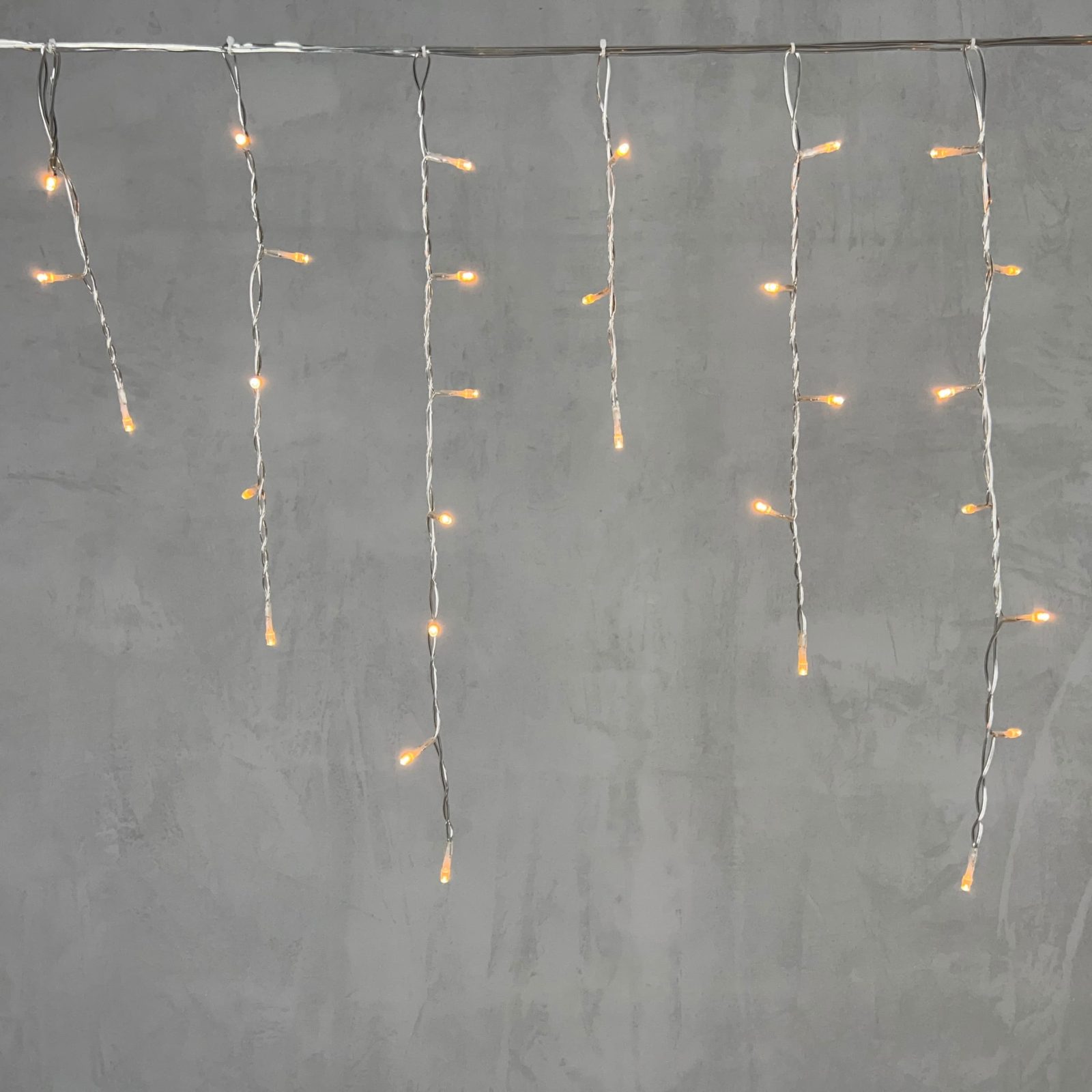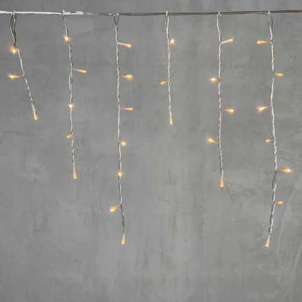 Уличная гирлянда-бахрома длиной 4,9 м с мягким экстра тёплым свечением. 240 LED, прозрачный провод ПВХ, защита IP54. Подходит для украшения фасадов, навесов и заборов.