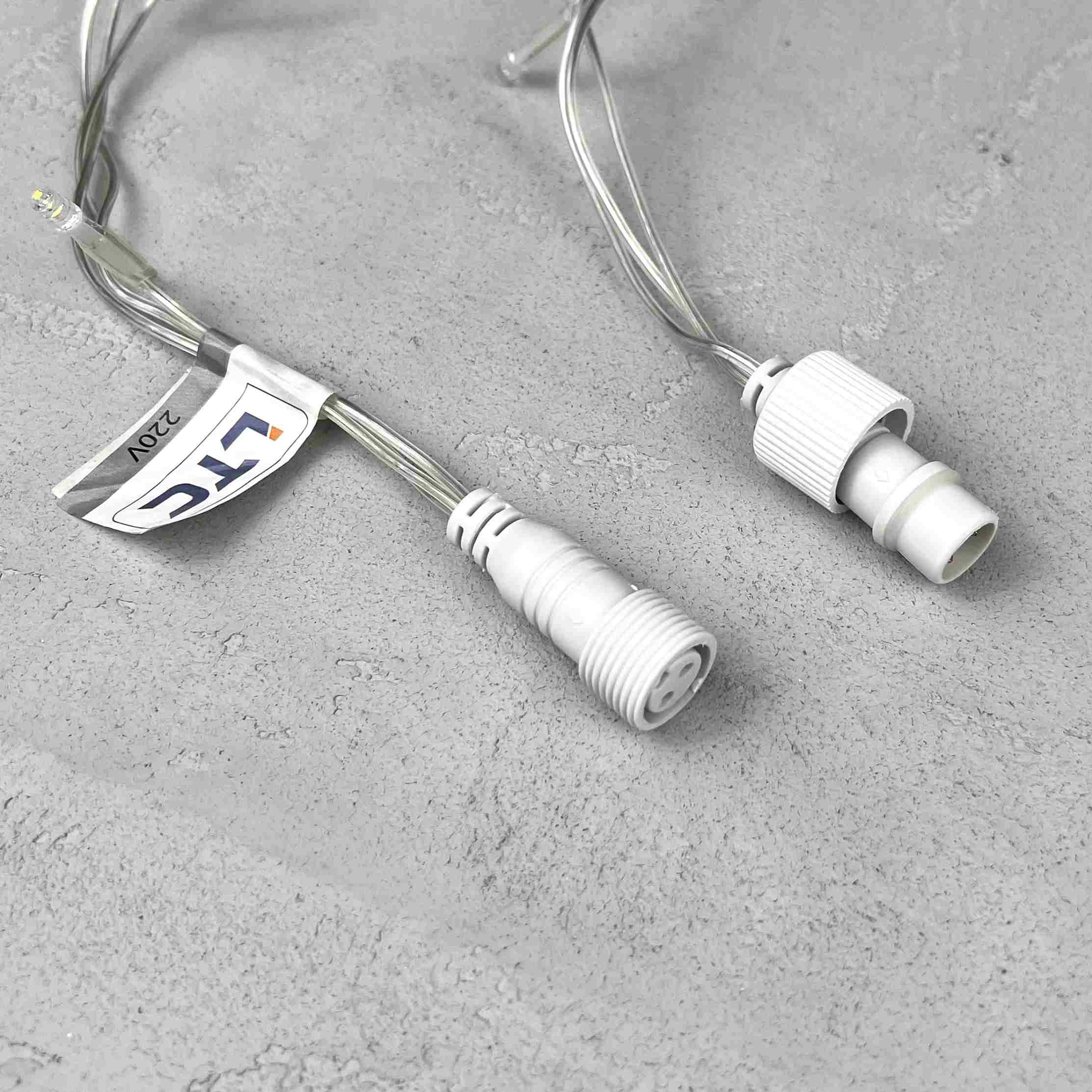 Гирлянда оснащена прозрачным ПВХ-проводом, который визуально «растворяется» на белых или светло-серых стенах. Это важно при монтаже на:
