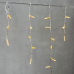 Уютная гирлянда-бахрома с тёплым белым свечением и декоративными колпачками. Длина 4,9 м, 195 светодиодов, IP65, прозрачный ПВХ-провод. Подходит для оформления фасадов частных домов.