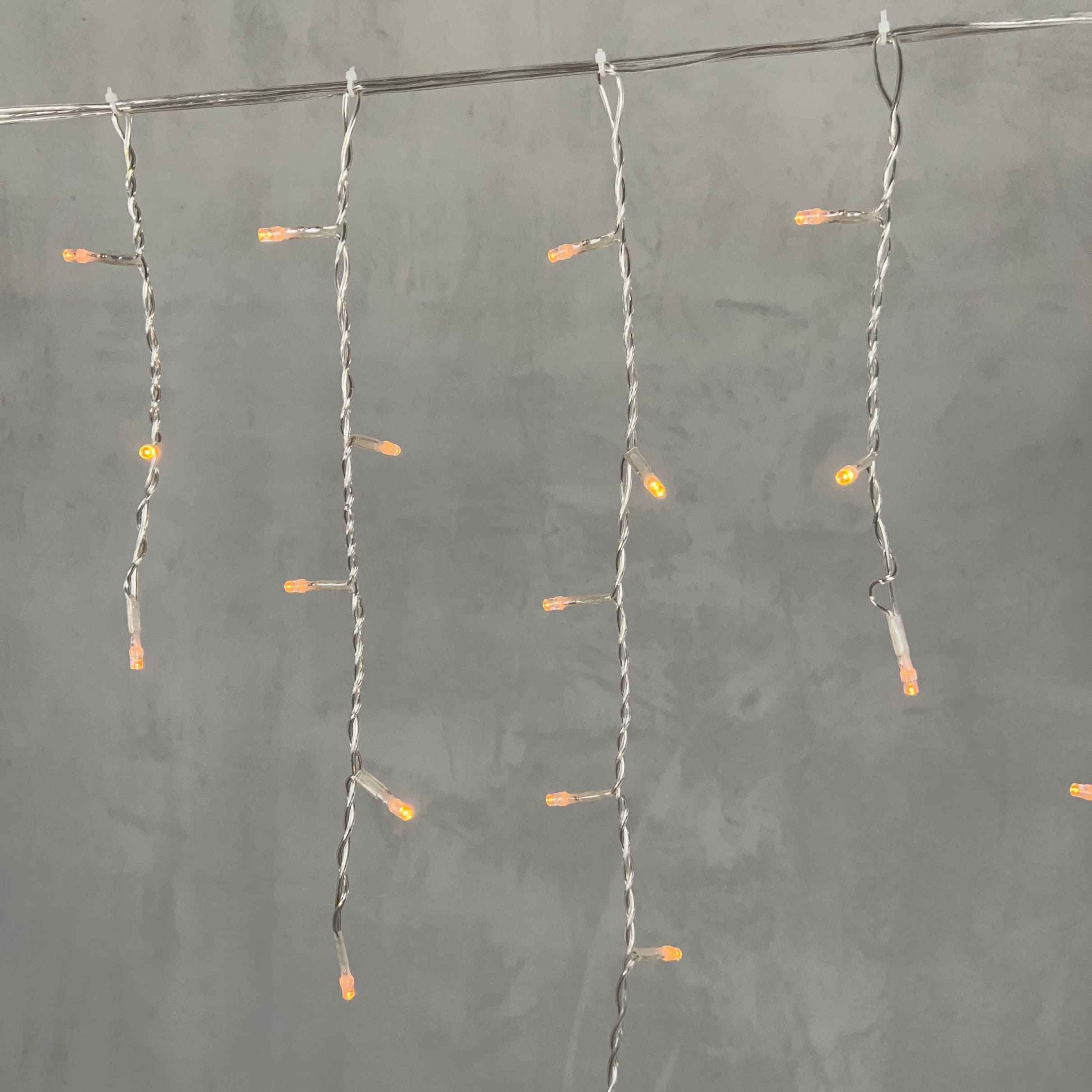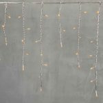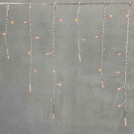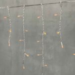 Длина гирлянды — 4,9 м. Вдоль основной линии размещено 240 светодиодов, которые дают равномерное, плотное свечение. Каждая нить спадает на 0,5 м вниз, образуя эффект каскада. Такой размер и высота оптимальны для одноэтажных и двухэтажных зданий, особенно в условиях ограниченного пространства (например, между окнами или под козырьком).
