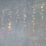 Гирлянда с колпачками на прозрачном ПВХ-проводе и экстра тёплым свечением. Длина 4,9 м, 189 LED, защита IP65. Подходит для оформления фасадов, террас, входных зон. Свет ровный и уютный. Можно соединять до 49 метров. Один режим — статичный.