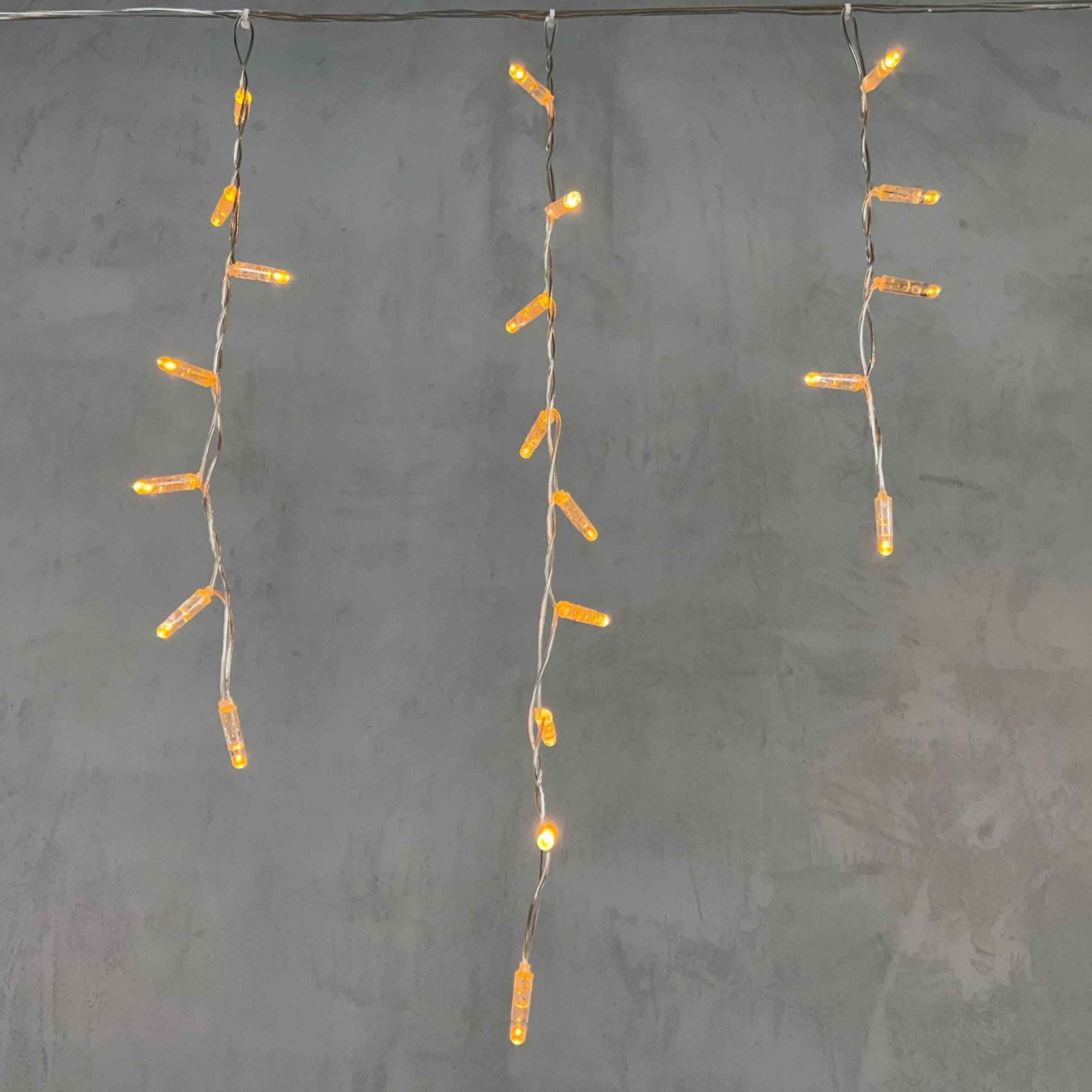 Гирлянда выполнена на прозрачном ПВХ-проводе. Он практически незаметен на фасаде при выключенном освещении. Это особенно важно при монтаже на светлые стены, на стеклянные поверхности или в интерьере.